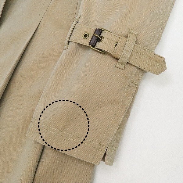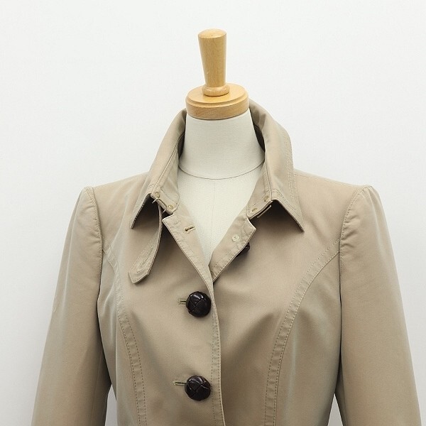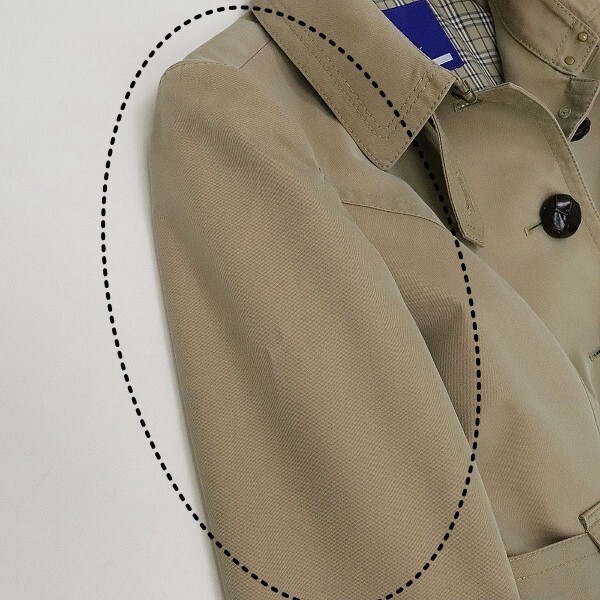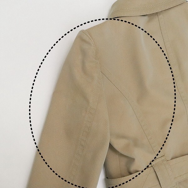 | 素材 | 表地:コットン67% ポリエステル33% 釦、バックル部分:牛革 ベルト部分:合成皮革 裏地 胴:キュプラ ポリエステル 袖:ポリエステル |