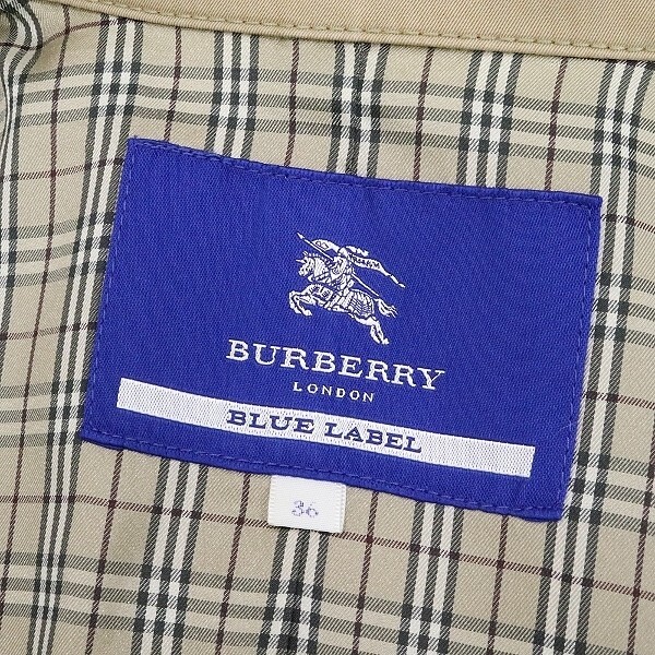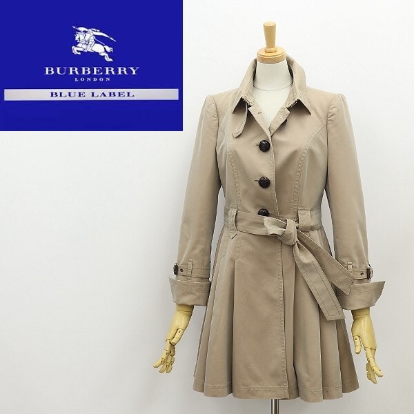 | ◆BURBERRY BLUE LABEL バーバリー ブルーレーベル 裏地ノバチェック柄 バスケットボタン リボンベルト付 プリーツ スプリング コート 36 | |
