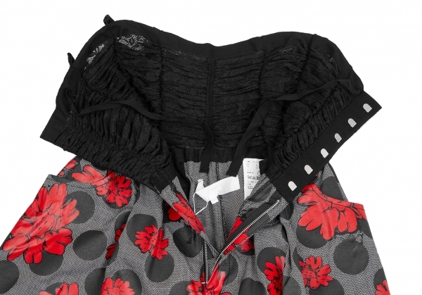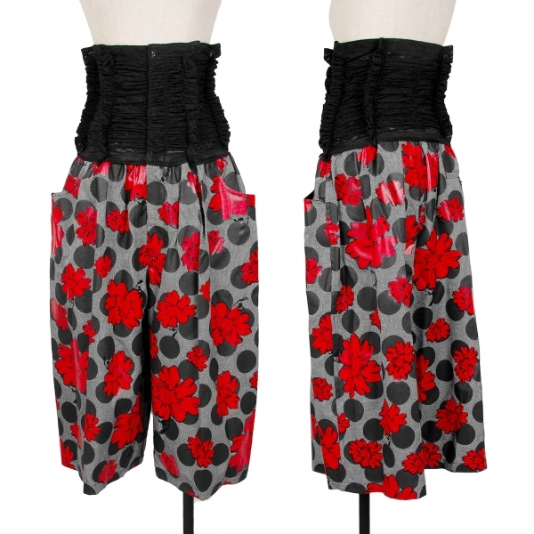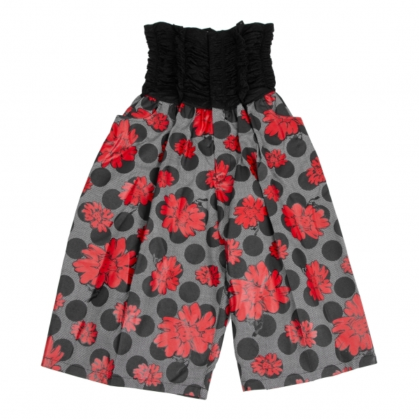 新品!タオtao フラワーボタンドットプリント切替パンツ 黒白赤S |