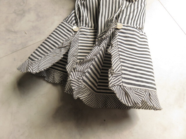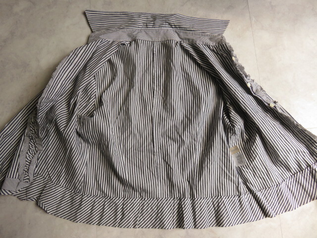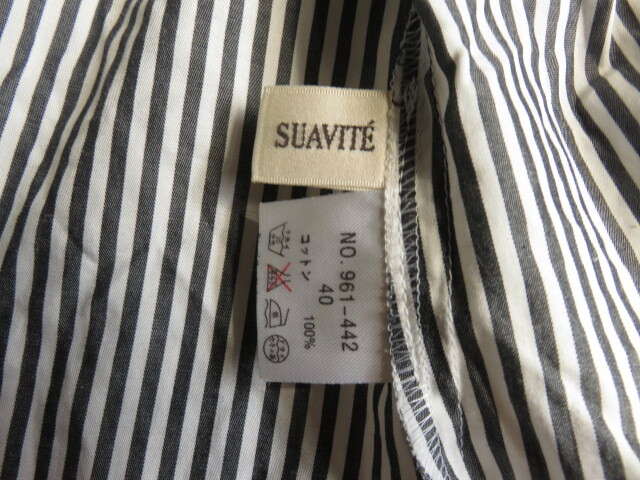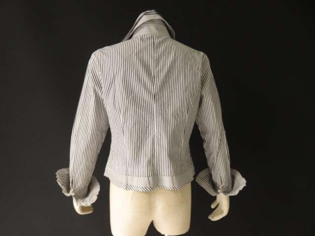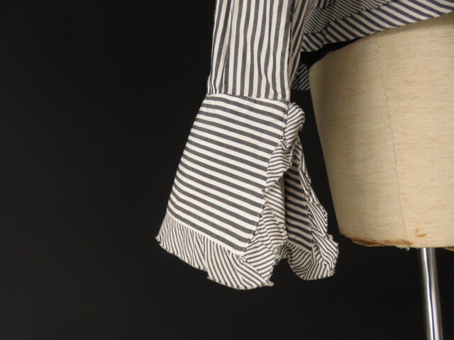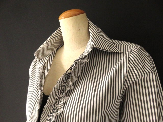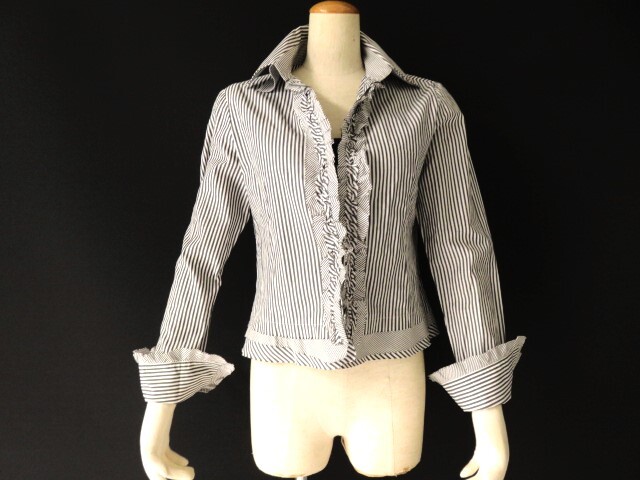 ■新品同様 上質美品【 SPECCHIO SUAVITE】 スペッチオ 高級 フリル ストライプ ブラウス【40】11号 L グレー ホワイト 送料185円 w1736