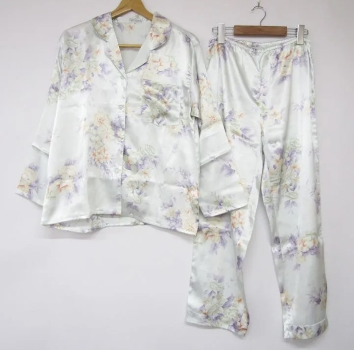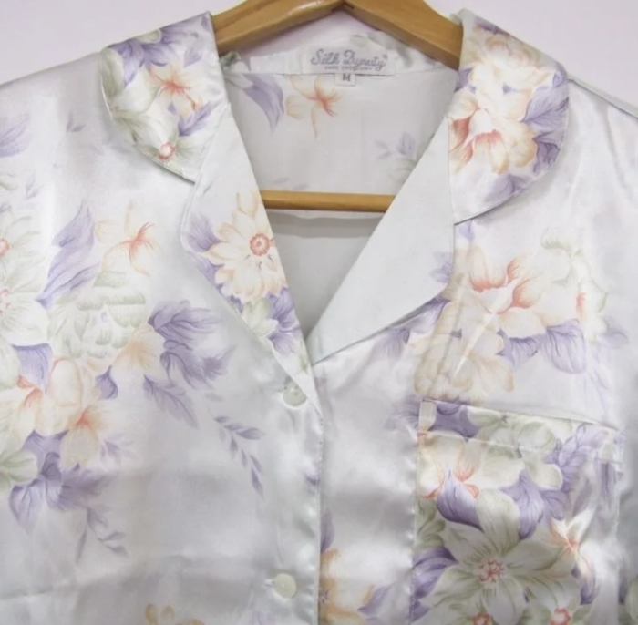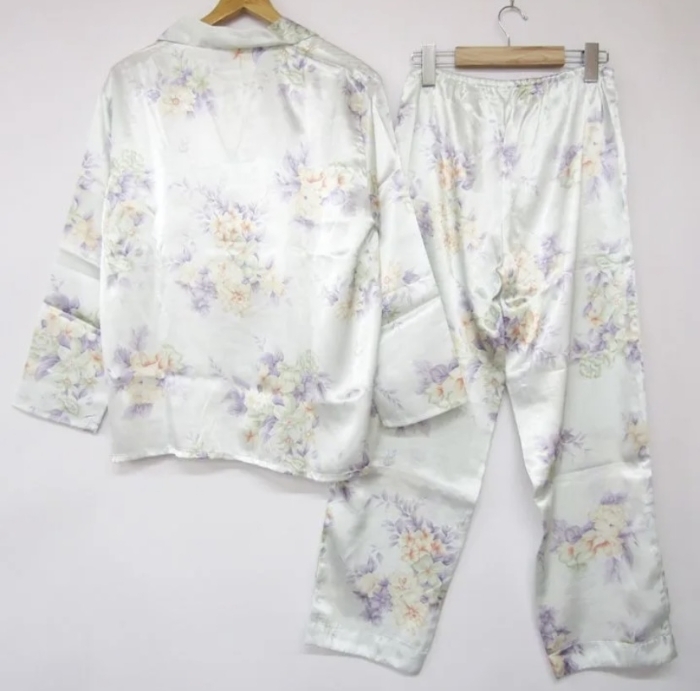 商品名 → シルクダイナスティ Silk Dynasty セットアップ ルームウェア パジャマ 長袖 花柄 フラワー ライトブルー 水色 レディース