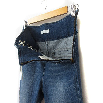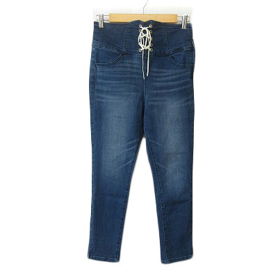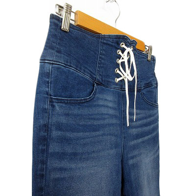 セシルマクビー CECIL McBEE パンツ デニム スキニー レースアップ ハイウエスト M 青 ブルー レディース