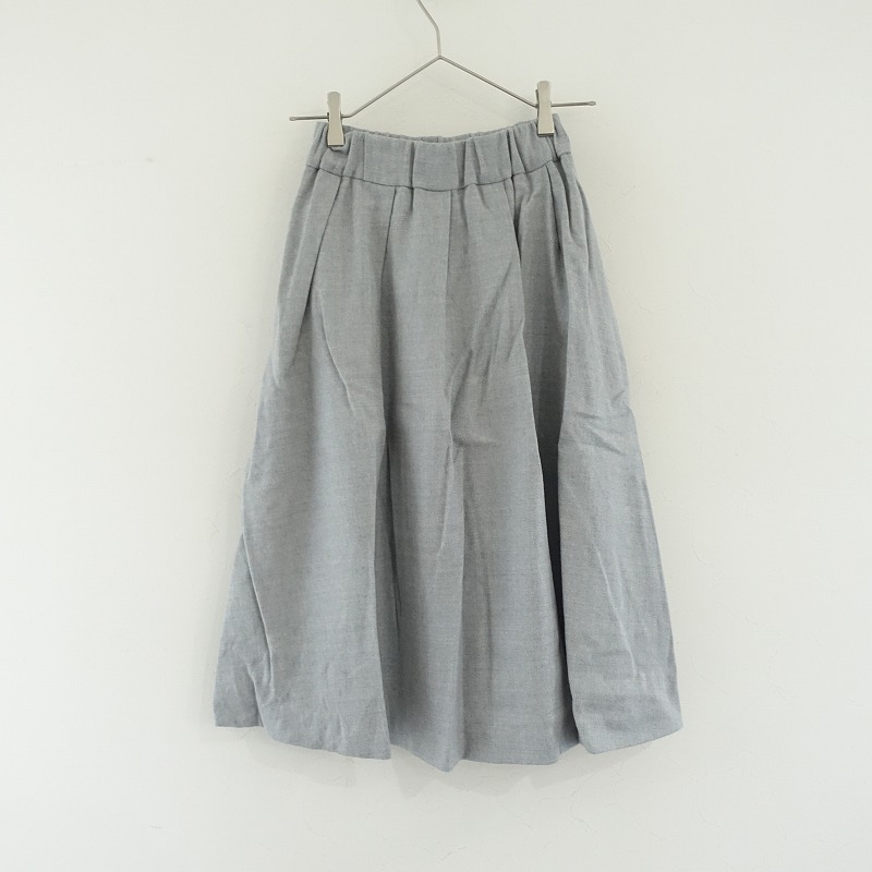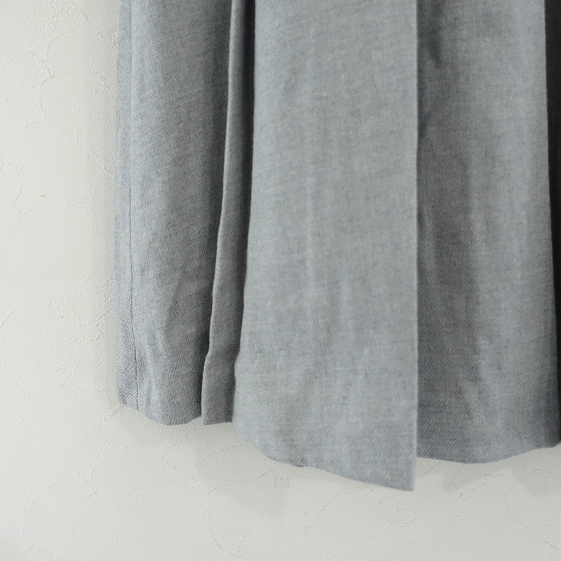 | SACRAのウールソフトプリーツスカートです。カラーはグレー杢です。ウールの微起毛・艶・伸縮性のある中厚生地を使用。滑りの良い裏地付きで仕立てられています。ウエストは幅の広い総ゴム入りです。裾に向かい広がるソフトプリーツが施されております。両サイドにはシームポケットがございます。 |