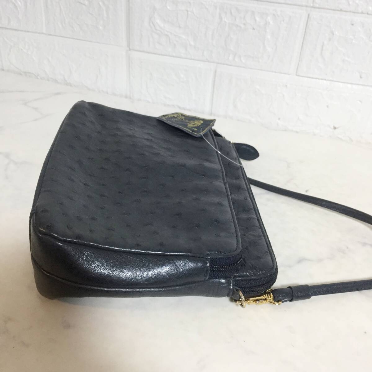 no28795 高級 NB 本革 レザー オーストリッチ エキゾチック 斜め掛けショルダー バッグ ポシェット