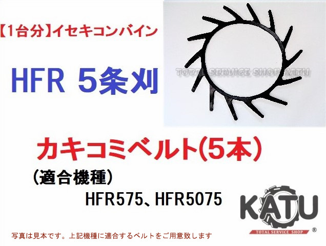新品【1台分】イセキ コンバイン HFR 5条刈用 突起付ベルト(5本) 掻き込みベルト カキコミベルト ハンソウベルト 搬送ベルト