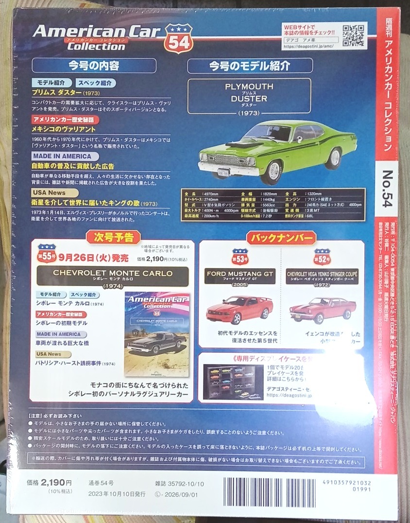 ☆ディアゴスティーニ No.54 1/43 アメリカンカーコレクション プリムス ダスター(1973)☆新品未開封品
