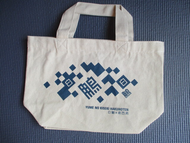 YUME NO KISEKI HAKUHOTEN の帆布トートバッグです。サイズは、31×20センチ、マチ付きでマチの部分