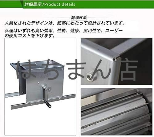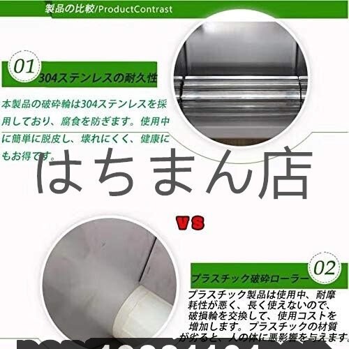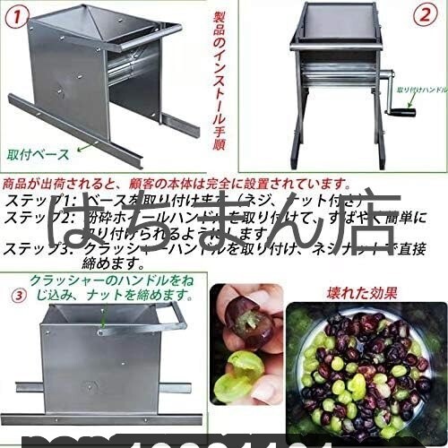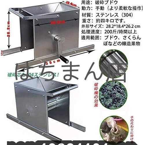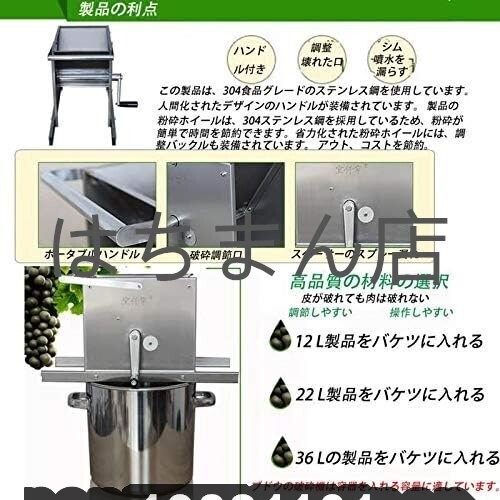 ●商品未使用 状態:新品未使用 素材:304ステンレス鋼+304ステンレス鋼歯車、 耐久性と防錆。 使用中に簡単に皮をむく剥がれ、損傷しにくく。優れた破砕効果、清掃が簡単、製品重量:4KG 304ステンレス鋼歯車:頑丈な304ステンレス鋼、独特の複数の歯が交互に噛まれ、ブドウ、チェリー、その他のワインを非常によく押しつぶすことができます。 この製品は、インストールと操作が簡単です。 シンプル、電力なし、移動が簡単。製品の内容:小型粉砕機*1 ストレージバケットなし 手回し粉砕機:簡単な操作、速度を手動で自由に制御。短時間であブドウ、イチゴ、ブルーベリー、クワなどの果実を粉砕できます。時間と労力を節約。 調整可能なクリアランス:2mm--2cm、さまざまな果物のニーズに応じて、手動でギャップを調整してください。簡単に移動できるハンドル付き。 ●海外輸入品です。