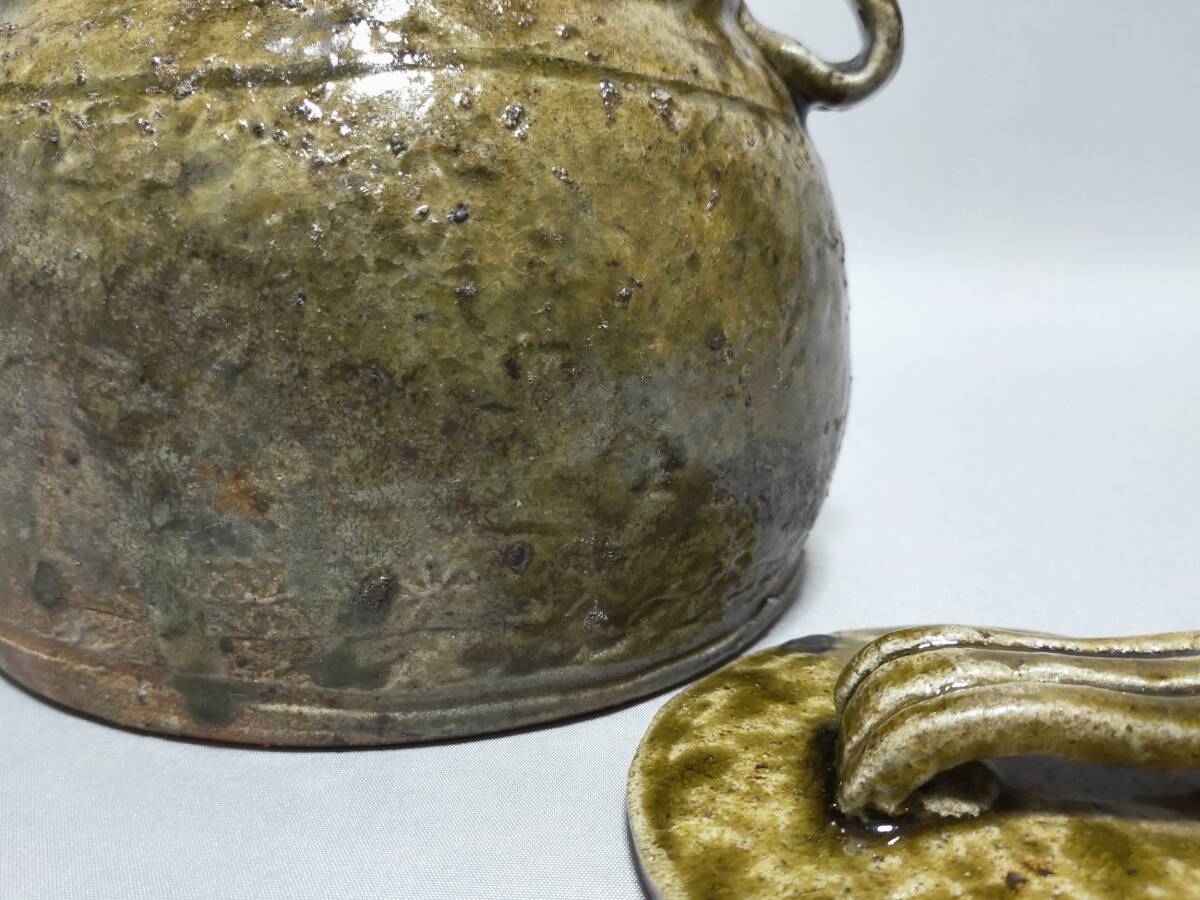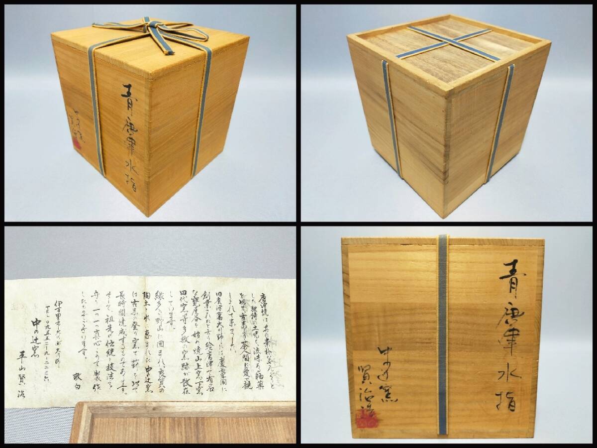 唐津焼 水指 中の辻窯 平山賢治 造 青唐津 耳付水指 高20.5cm 栞・共箱 茶道具