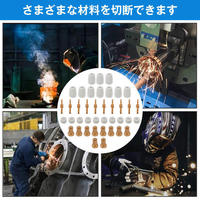 CUT-40 互換 10セット プラズマ カッター トーチ ロング ノズル チップ 先端 消耗品 切断機 鉄板 CUT40 10個 電極 PT-31 PT31