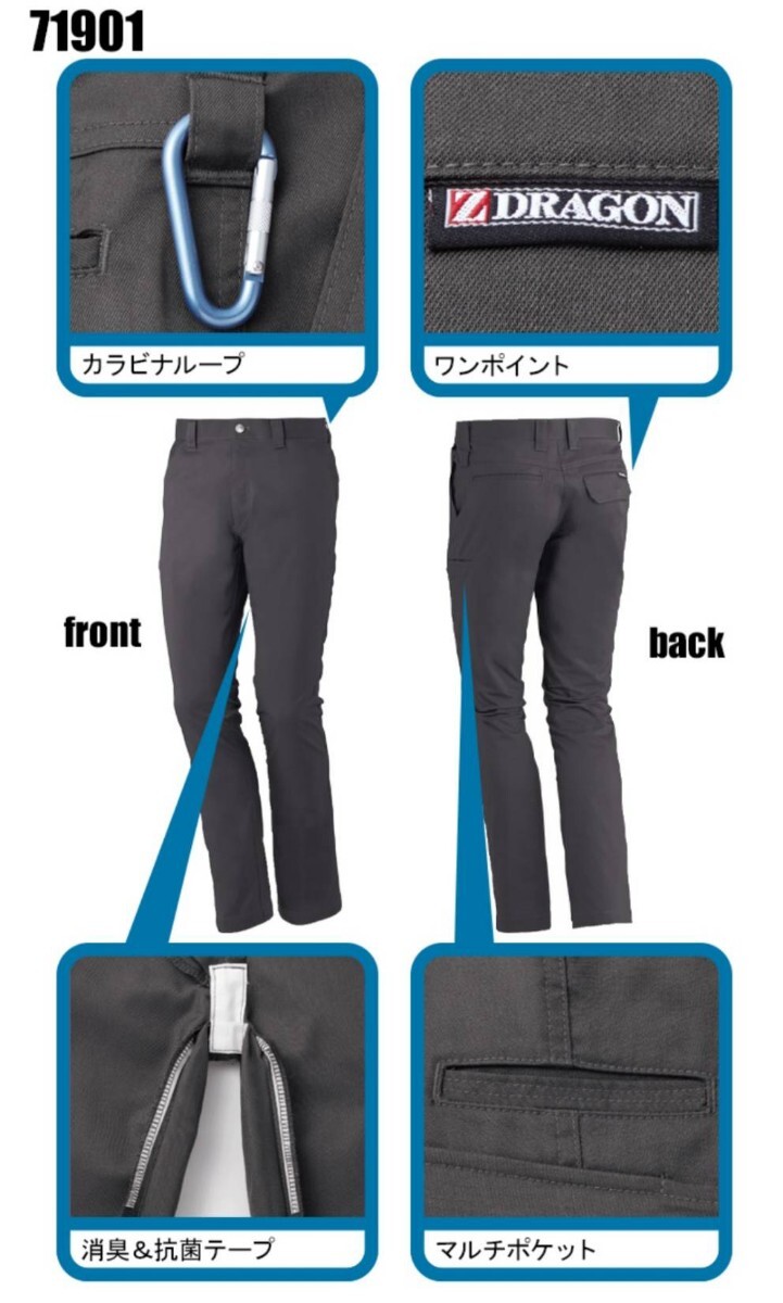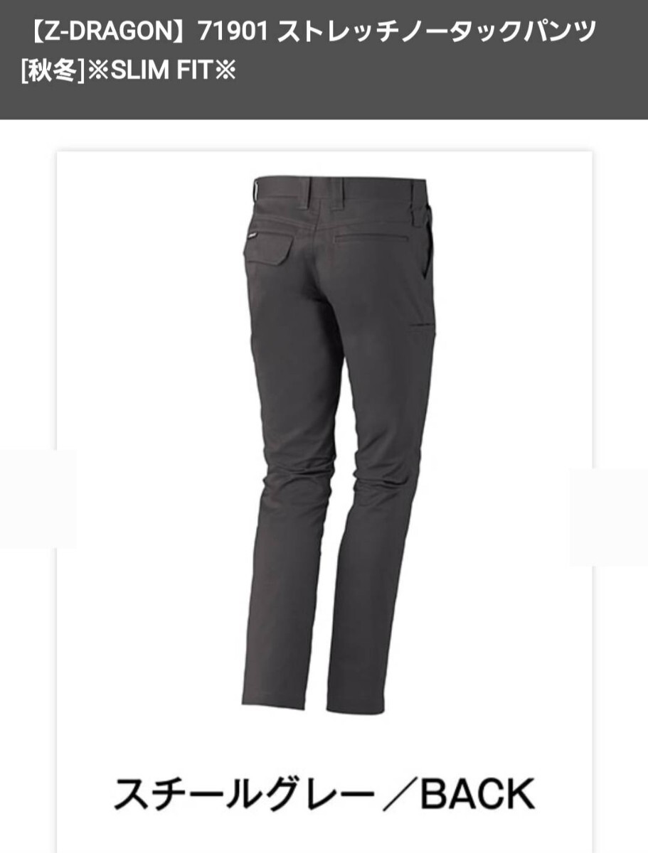 1571 自重堂Z-DRAGONストレッチノータックパンツW82㎝シルバー№71901秋冬作業ズボン新品グレー消臭抗菌 (バートルJawinジードラゴン寅壱
