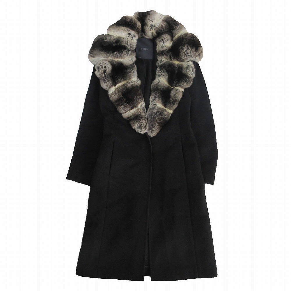 ・商品名【FENDI フェンディ カシミヤ100% チンチラファー 本毛皮 コート アウター 黒 ブラック サイズ40 レディース】