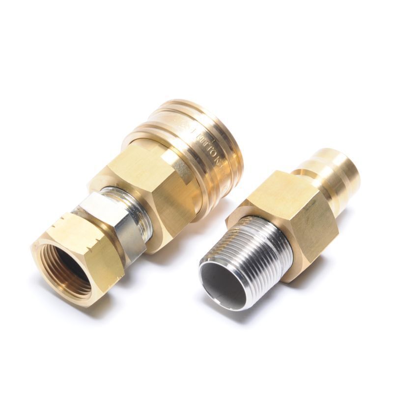 吸水ホース・余水ホースと洗浄機の接続を、ワンタッチカプラーへ変換する継手です。