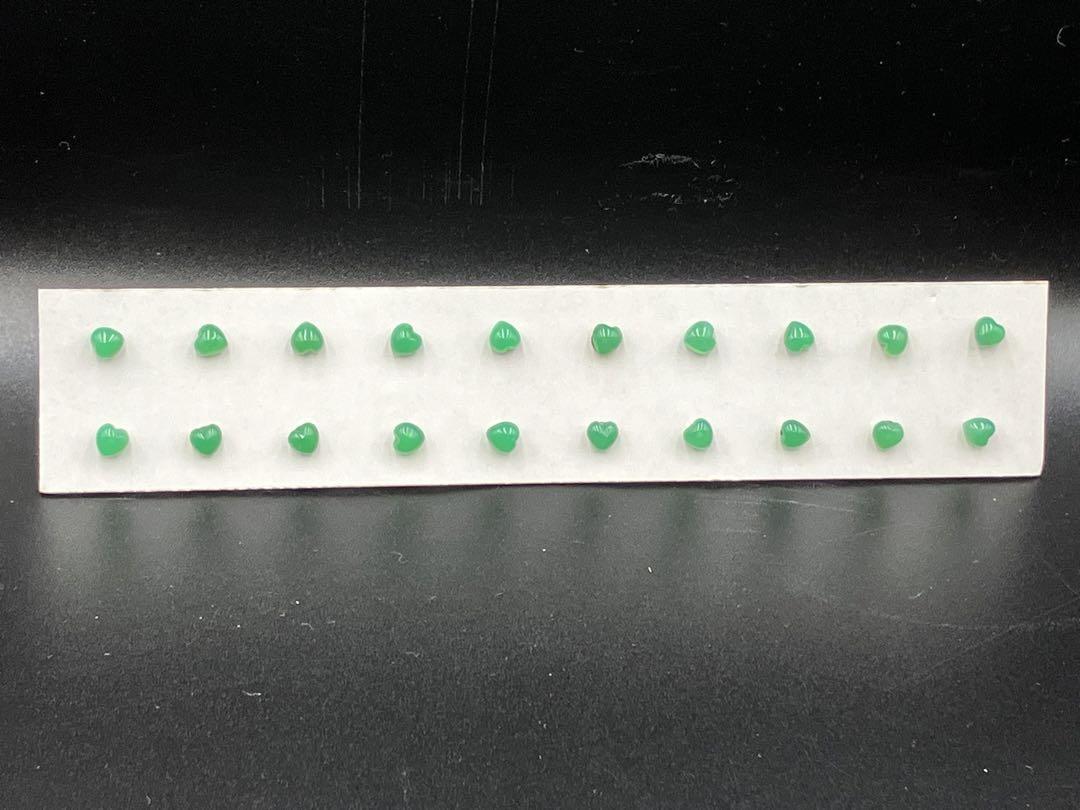 天然石 ハート型カボッション ピアス サージカルステンレスこれだけあれば、片方なくしても安心!種類・・・まとめ売り土台素材・・・サージカルステンレスモチーフ素材・・・天然石ピアス10セットまとめ売りカラー・・・グリーンピアス 形・・・キャッチ・スタッド新品、未使用
