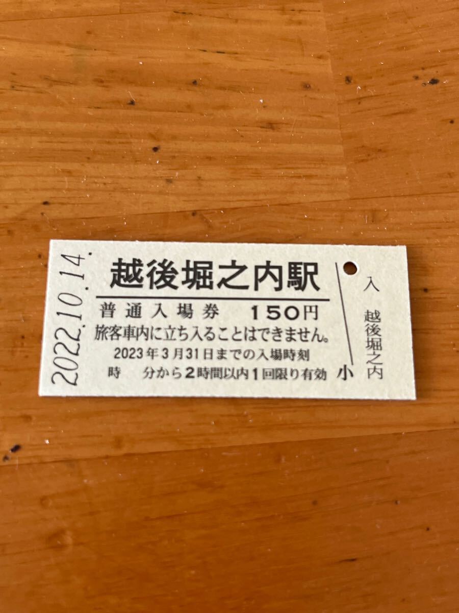 JR東日本上越線越後堀之内駅のB型硬券入場券です。(2022年)