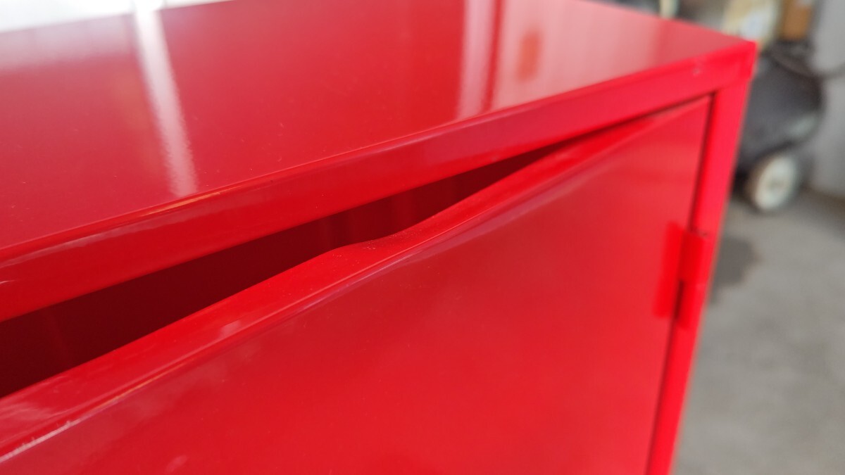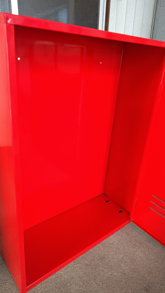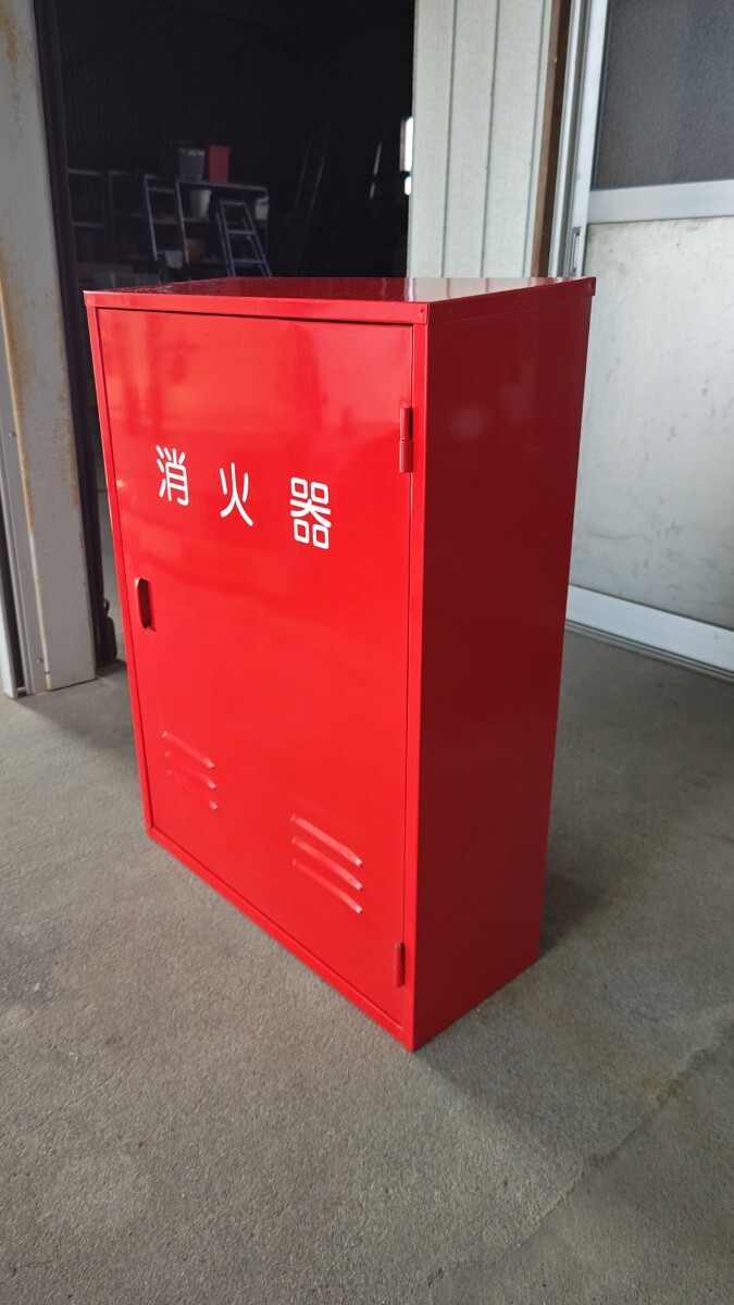 モリタ宮田工業製の消火器格納箱BF202です。会社で使う予定でしたが使用されないまま保管されてたものです。新品未使用品ですが6枚目と7枚目の画像をご覧になればわかりますが扉に少し歪みがあります。開閉に全く問題ありません。新品未使用品ですがノークーレム&ノーリターンでお願いします。