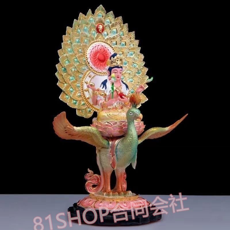 「81SHOP」 仏像 彩色孔雀明王 坐像【明王】孔雀明王 乗座孔雀 樹脂製 高さ30CM