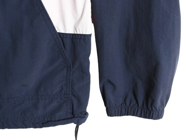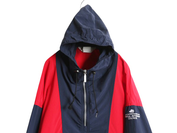 90年代のオールド L.L.BEAN のナイロンアノラックパーカーです。 希少な、MADE IN USA (アメリカ製) 素材は、100% NYLON ( ナイロン ) ハリのある薄手のノンリップナイロン素材 フロントジップは、ロゴトップ付きのYKKジップを使用 フロントにハンドウォーマーポケットと ジップ付きカンガルーポケット カンガルーポケットに本体収納可能 (パッカブル) コンパクトに収納でき持ち運びも便利です。 ハイネックタイプ、襟を高く設定することによって 首周りの保温力も高くなっています。 フード、裾に、保温性、防風性を高めるドローコードが付きます。 左胸にワンポイントのロゴ刺繍、 左袖に企業ロゴの刺繍入り レッドxネイビーxホワイトの好配色、トリコロール切替 なかなか見かけないグッドデザイン コンパクトに収納でき持ち運びも便利 使い勝手の良いシンプルなデザイン 幅広い季節に活躍する これさえあれば何かと重宝する商品です。 WOMENS Lは、メンズ S 程のサイズ感です。 詳しくは実寸をご確認ください。 |