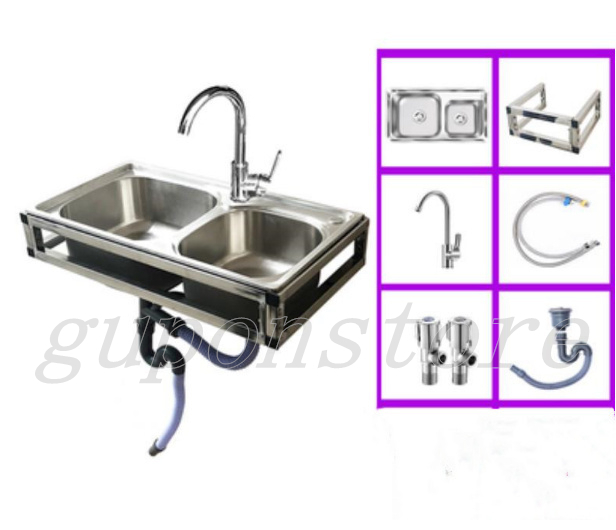 特売! 強力推薦☆キッチン用品 ステンレス製流し台 台所 2槽シンク 食器洗いシンク 野菜シンク 便利 冷熱混合栓 取り付け簡単