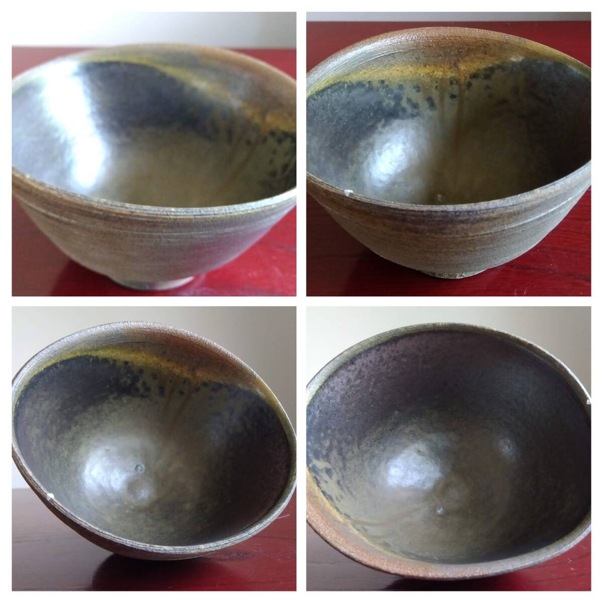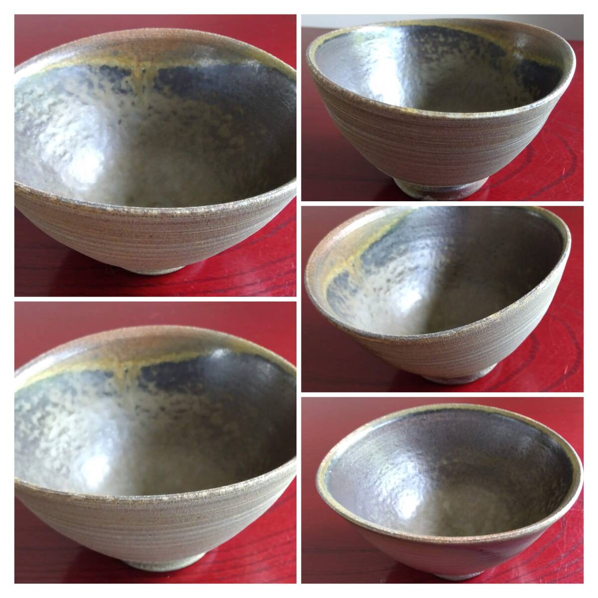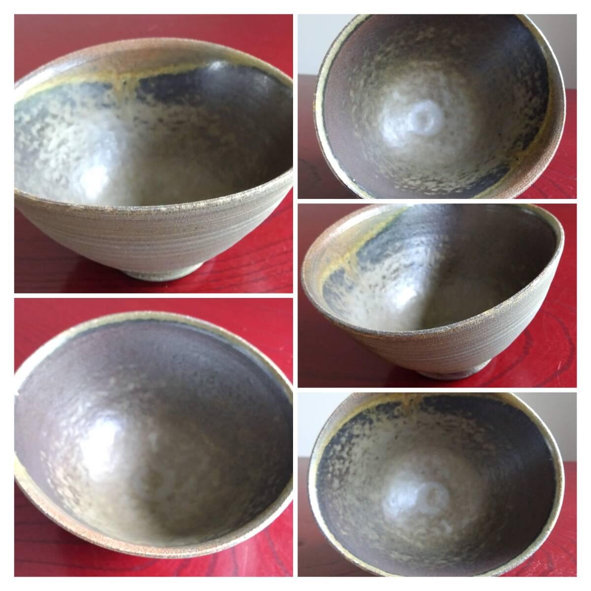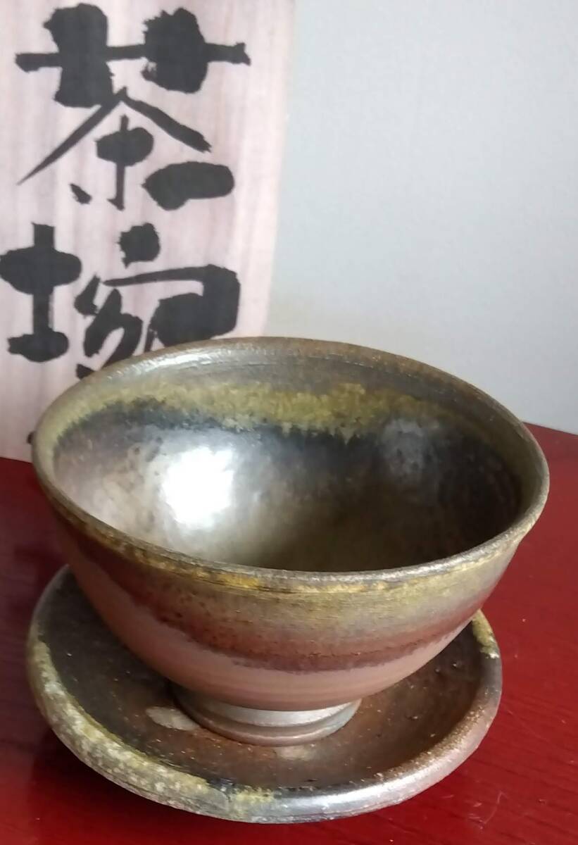 越前焼の名工 白越不朝(塩越窯)自然灰釉の究極美が迸る逸品灰釉美茶碗 No:1 鉄分多く含み茶褐色に焼きあがった還元炎の輪廻の色彩を表す素朴な温かみ肌触りを持った見事な「胴体」 そして「見込み」部分は夜空に輝く天空の天の川の時空を超えた悠久の流れ思わす極致の自然灰釉美をご堪能下さい。すっきりした薄目口縁そして胴体は越前独特の「ねじ立て」「輪積み形成」「はがたな伸ばし」そして「しのぎ」面取りの伝統技法を駆使した越前大壺を思わせるどっしりとした重量感/躍動美/風趣が極上の至福のひと時をもたらしてくれます。 穴釜陶芸美に全霊を捧げられている白越不朝師が亘ずね感謝されている薪と炎の神様がもたらしてくれた逸品です。師の「至高の技」が心和む「究極窯変美」に焼き上がり、器に浮き出る自然灰釉美は越前焼魅力の世界を再確認させてくれます。鉄分多く含み茶褐色に焼きあがる還元炎の輪廻の色彩を表す素朴な温かみある肌触りを持つ越前陶土「青ねば・赤べと・太古土」を最大限活かす形で作られ、越前(陶土)が表す独特の質感を最大限に活かす【石ハゼの妙】【灰被り】が「還元窯変美」「自然灰釉美」に三位一体化に組み合わされ斬新で魅力的な世界を創出しています。師の「至高の技」が心和む「究極窯変美」に焼き上がり、器に浮き出る自然灰釉美は越前焼魅力の世界を再確認させてくれます。 技巧的表現をも還元焼成させる際立つ(陶土)が表す独特の質感 薪と炎の神様が生み出した偶然の景色を楽しんで下さい。 茶碗No:10 画像No:7でお分かり戴ける様に口縁一部に石ハゼが出ている点ご了承ください。茶碗 No:1サイズ 長口径133㎜短口径117mm 胴高73/76mm見込み深60mm高台12mmX58mm 包装:共箱包装 茶碗茶托2点セット No:10 サイズ 口径115/125mm高さ67/73mm高台48mmX10mm 茶托サイズ: 口径162/164mm高さ34/37mm 高台径80mm厚み10mm 包装:共箱包装 どちらの作品を選択されたのかご連絡宜しくお願い致します。出品者覧の【出品中の商品を見る】より 他にも多数の作品を出しておりますので御参照してください。 同梱可能ですので宜しくお願い致します。