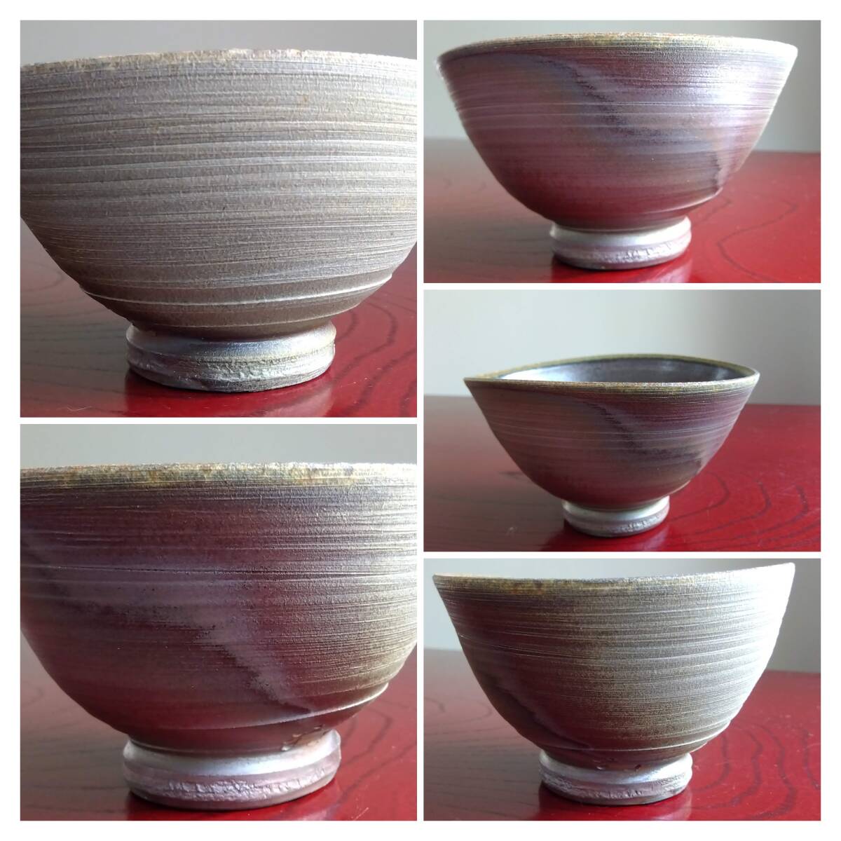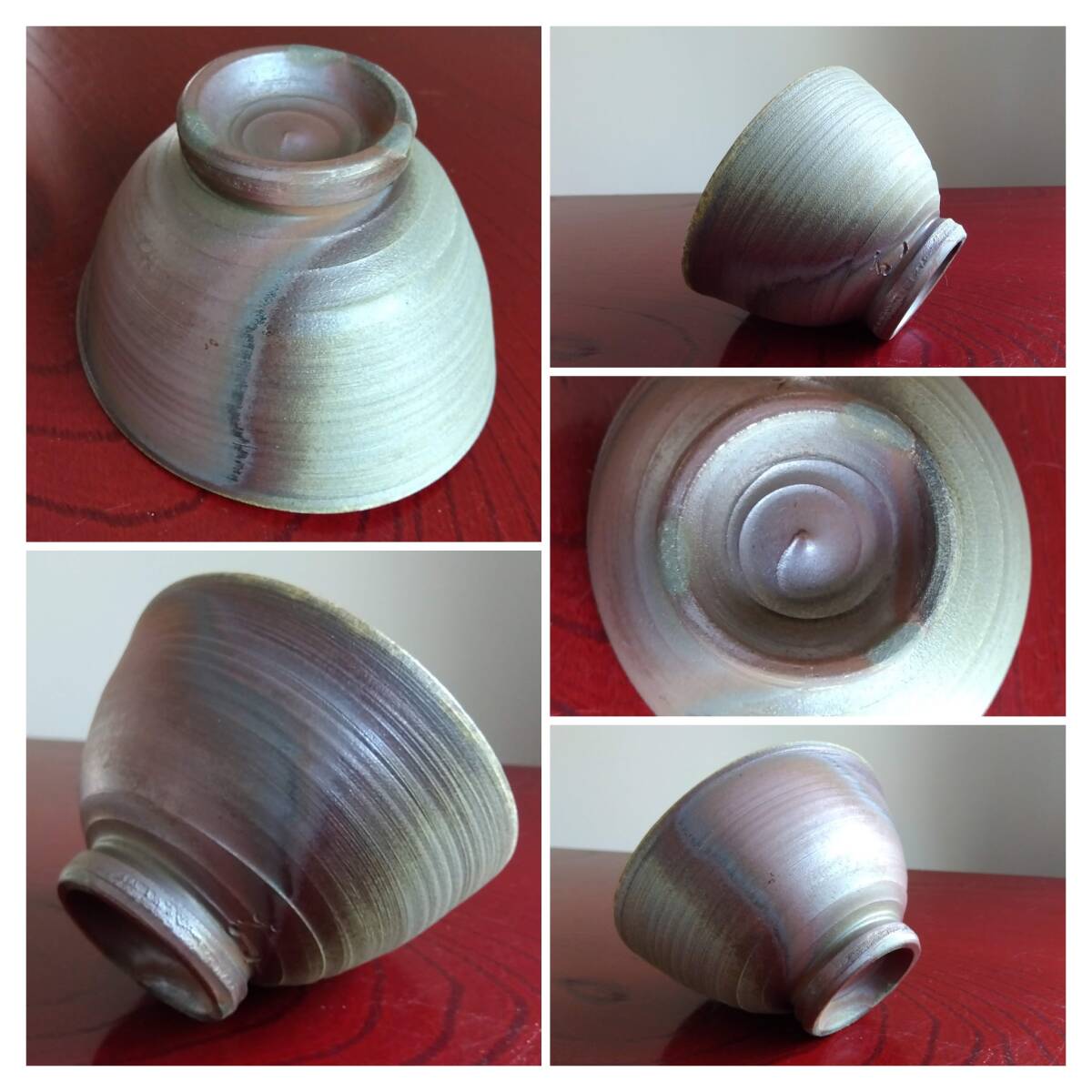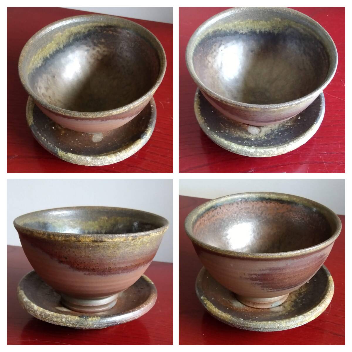 越前焼の名工 白越不朝(塩越窯)自然灰釉の究極美が迸る逸品灰釉美茶碗 No:1 鉄分多く含み茶褐色に焼きあがった還元炎の輪廻の色彩を表す素朴な温かみ肌触りを持った見事な「胴体」 そして「見込み」部分は夜空に輝く天空の天の川の時空を超えた悠久の流れ思わす極致の自然灰釉美をご堪能下さい。すっきりした薄目口縁そして胴体は越前独特の「ねじ立て」「輪積み形成」「はがたな伸ばし」そして「しのぎ」面取りの伝統技法を駆使した越前大壺を思わせるどっしりとした重量感/躍動美/風趣が極上の至福のひと時をもたらしてくれます。 穴釜陶芸美に全霊を捧げられている白越不朝師が亘ずね感謝されている薪と炎の神様がもたらしてくれた逸品です。師の「至高の技」が心和む「究極窯変美」に焼き上がり、器に浮き出る自然灰釉美は越前焼魅力の世界を再確認させてくれます。鉄分多く含み茶褐色に焼きあがる還元炎の輪廻の色彩を表す素朴な温かみある肌触りを持つ越前陶土「青ねば・赤べと・太古土」を最大限活かす形で作られ、越前(陶土)が表す独特の質感を最大限に活かす【石ハゼの妙】【灰被り】が「還元窯変美」「自然灰釉美」に三位一体化に組み合わされ斬新で魅力的な世界を創出しています。師の「至高の技」が心和む「究極窯変美」に焼き上がり、器に浮き出る自然灰釉美は越前焼魅力の世界を再確認させてくれます。 技巧的表現をも還元焼成させる際立つ(陶土)が表す独特の質感 薪と炎の神様が生み出した偶然の景色を楽しんで下さい。 茶碗No:10 画像No:7でお分かり戴ける様に口縁一部に石ハゼが出ている点ご了承ください。茶碗 No:1サイズ 長口径133㎜短口径117mm 胴高73/76mm見込み深60mm高台12mmX58mm 包装:共箱包装 茶碗茶托2点セット No:10 サイズ 口径115/125mm高さ67/73mm高台48mmX10mm 茶托サイズ: 口径162/164mm高さ34/37mm 高台径80mm厚み10mm 包装:共箱包装 どちらの作品を選択されたのかご連絡宜しくお願い致します。出品者覧の【出品中の商品を見る】より 他にも多数の作品を出しておりますので御参照してください。 同梱可能ですので宜しくお願い致します。