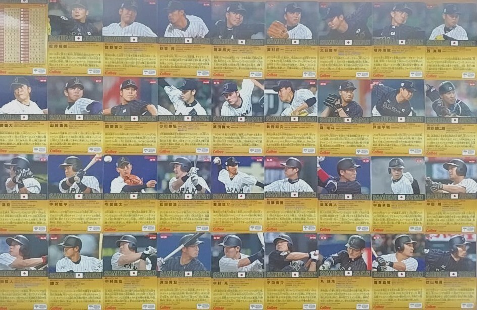 SJ-01小久保監督、02松井裕樹(楽天)、03菅野智之(巨人)、04秋吉(ヤクルト)、05則本(楽天)、06澤村(巨人)、07大谷、08増井(日本ハム)、09西(オリックス)、10大野(中日)、11山崎(横浜DeNA)、12西野(ロッテ)、13小川(ヤクルト)、14武田(ソフトバンク)、15牧田(西武)、16森(ソフトバンク)、17戸根(巨人)、18炭谷(西武)、19嶋(楽天)、20中村(ヤクルト)、21今宮、22松田(ソフトバンク)、23菊池(広島)、24川端(ヤクルト)、25坂本(巨人)、26中島、27中田(日本ハム)、28山田(ヤクルト)、29銀次(楽天)、30中村(西武)、31清田/金サイン(ロッテ)、32中村(ソフトバンク)、33平田(中日)、34丸(広島)、35筒香(横浜DeNA)、36秋山(西武)