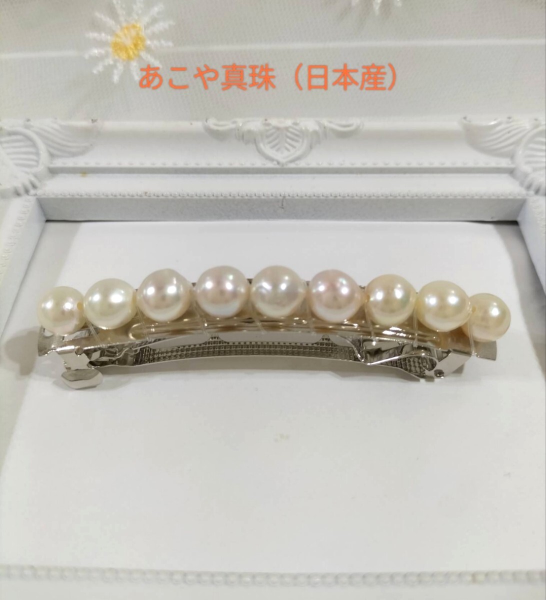 商品はあこや本真珠の髪飾り(バレッタ)でございます。