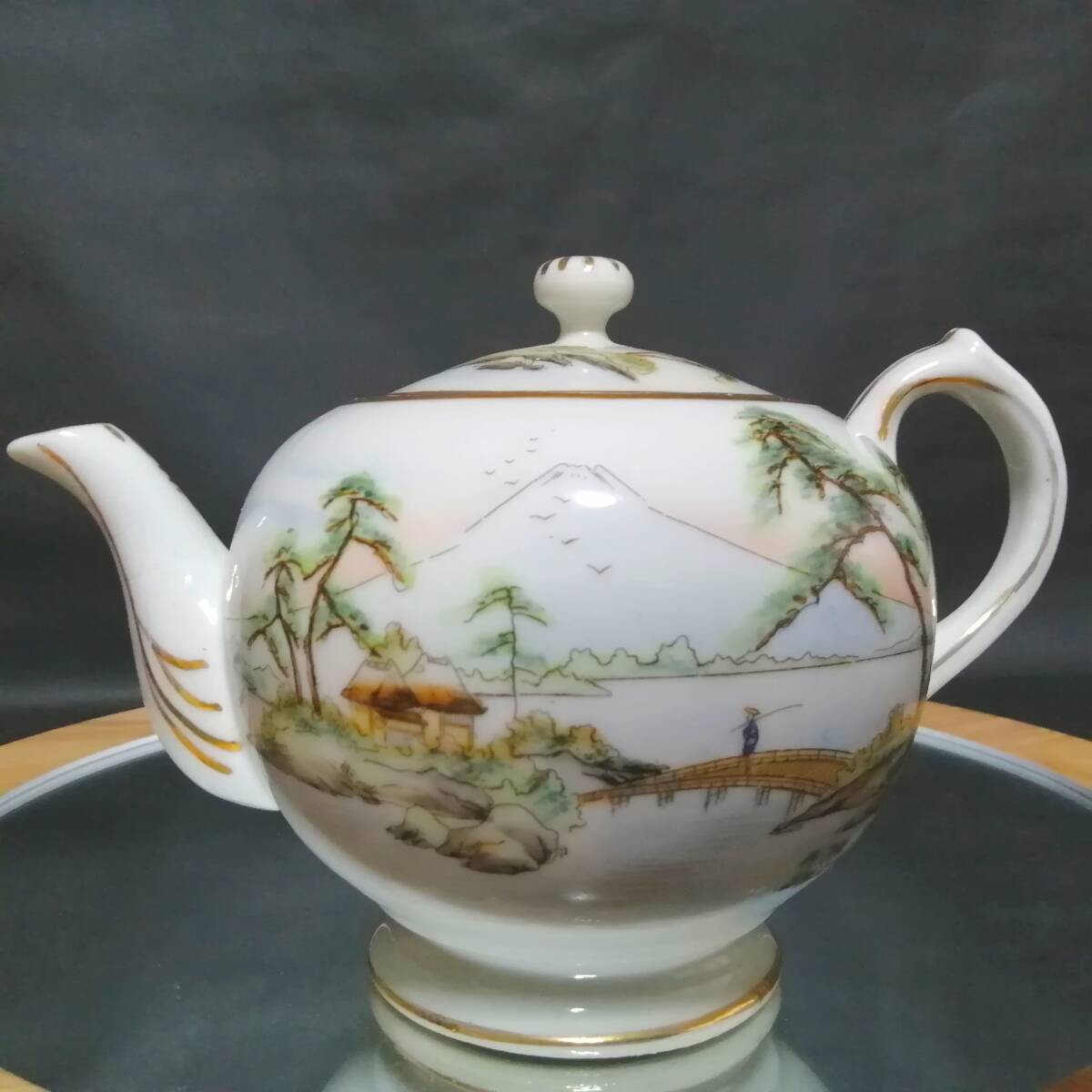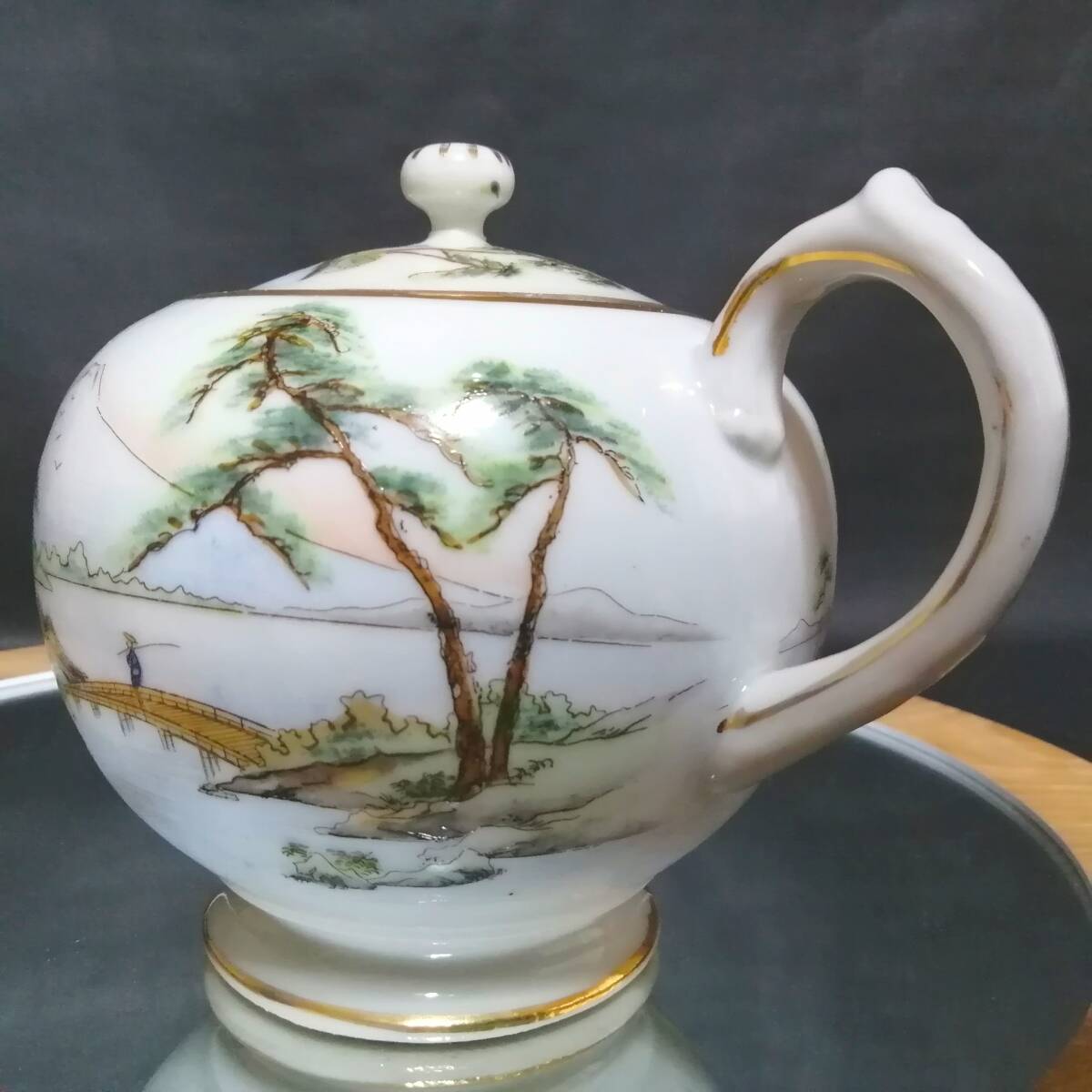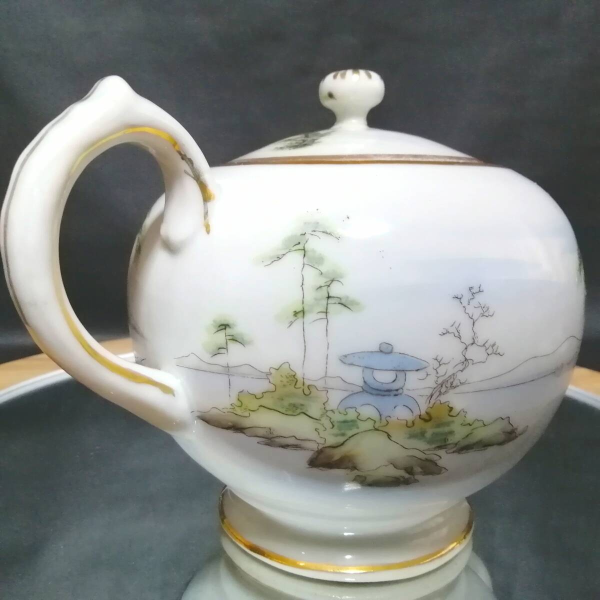 数多くの出品物より当ページを訪問頂き、感謝申し上げます。 画像1枚目に掲載されているものをお届けします! ※お皿立て等の備品除く 趣味で集めておりますが、保管場所が限界を超えたため、 大切に使って下さる方の元で、第2の人生を歩んでほしいと思い出品します。 ーサイズー(小数点は四捨五入) 口径 8CM 直径 19CM 縦横 12X13CM ーお品物の歴史背景ー こちらは情報がなく、詳しいことはわからない状況です。 ーお品物の現状ー 画像の通り、本体フタと注ぎ口にカケがあります。 アンティーク品質という前提で、 目立った傷はありません。 発送方法は発送方法欄をご覧ください。 リサイクル梱包材で梱包の上、割れないようご用意します。 ご入金後に準備開始します、約3日間頂戴しておりますが、 ※まれに発送お休みする期間があります、自己紹介文をご確認ください。 | ||||||