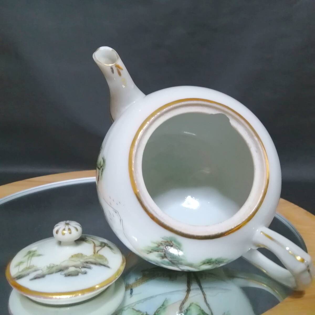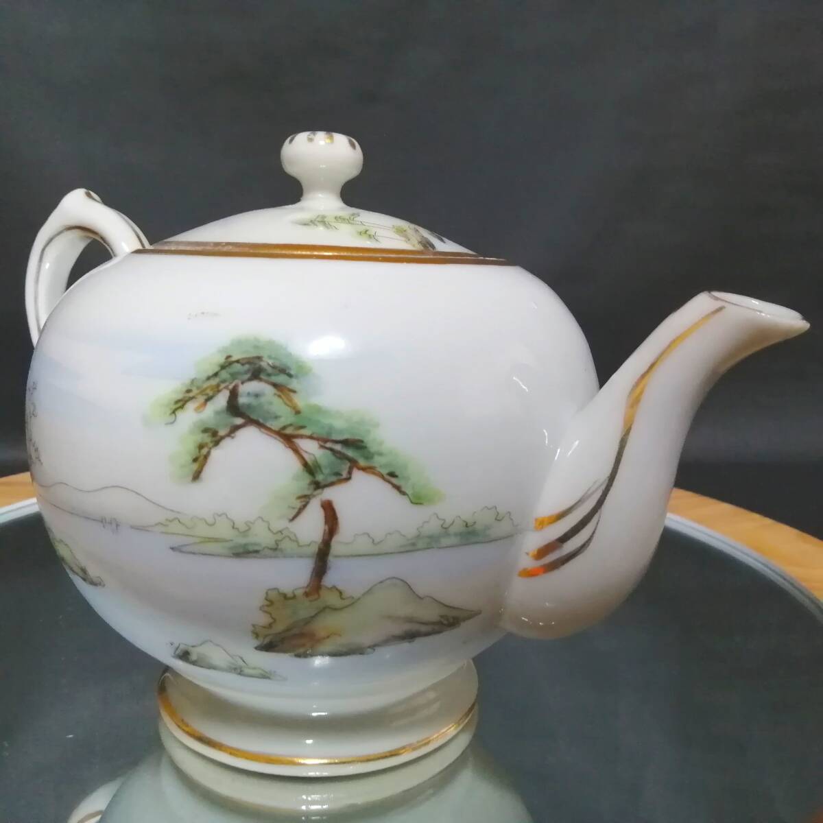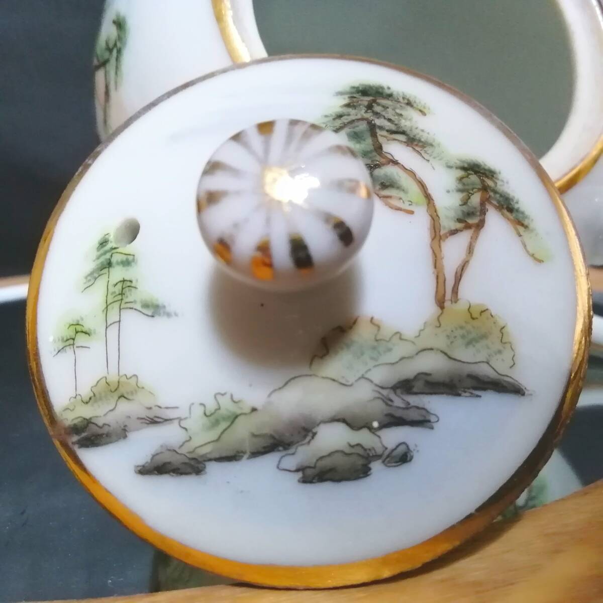 数多くの出品物より当ページを訪問頂き、感謝申し上げます。 画像1枚目に掲載されているものをお届けします! ※お皿立て等の備品除く 趣味で集めておりますが、保管場所が限界を超えたため、 大切に使って下さる方の元で、第2の人生を歩んでほしいと思い出品します。 ーサイズー(小数点は四捨五入) 口径 8CM 直径 19CM 縦横 12X13CM ーお品物の歴史背景ー こちらは情報がなく、詳しいことはわからない状況です。 ーお品物の現状ー 画像の通り、本体フタと注ぎ口にカケがあります。 アンティーク品質という前提で、 目立った傷はありません。 発送方法は発送方法欄をご覧ください。 リサイクル梱包材で梱包の上、割れないようご用意します。 ご入金後に準備開始します、約3日間頂戴しておりますが、 ※まれに発送お休みする期間があります、自己紹介文をご確認ください。 | ||||||