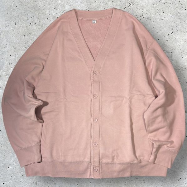 ★BIGサイズ★UNIQLO★スウェット地カーディガン size4XL くすみピンク系 羽織り ユニクロ 古着 クリーニング プレス済み 1863