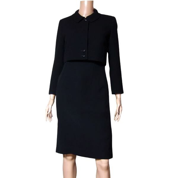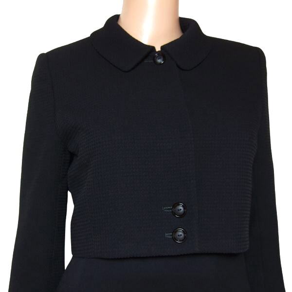 | サイズ*実寸 | ★【サイズ】 * 7号表示 ※サイズについては、必ず実寸も合わせてご参考下さい。 ★【実寸】 平置き(単位cm) (ジャケット)*肩幅36 *身幅44 *袖丈51 *丈38 (ワンピース)*肩幅35 *身幅41 *袖丈31 *ウエスト36 *ヒップ45 *丈98 *バックスリット20 ※肩幅は縫い目から縫い目までの計測です。 ※生地の性質上測り方で数センチ変わる場合がありますので多少の誤差はご了承下さい。 | ||||||||||