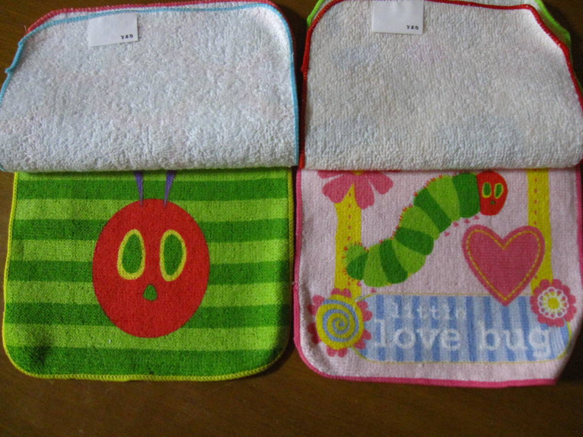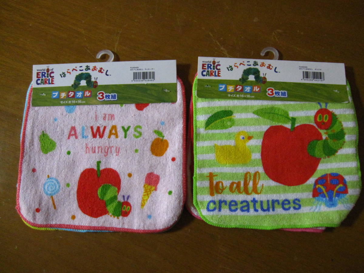 ■ ミニタオル  はらぺこあおむし  (ダイスキ、ラッキーデー)  3枚組×2種類  ※1セットのみ。