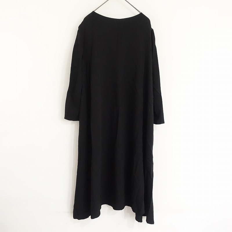 | NO CONTROL AIRのAラインワンピースです。カラーはブラックで、落ち感のある薄手生地で仕立てられております。フロント襟元に小さなスリット入り、プルオーバータイプで、両サイドにシームポケットが付いております。 |