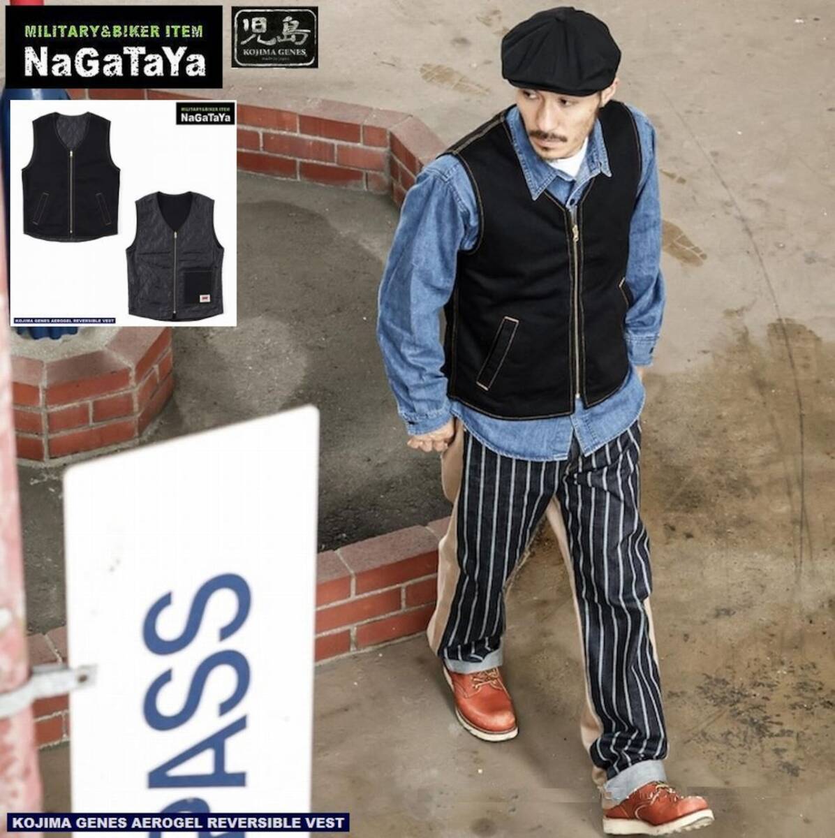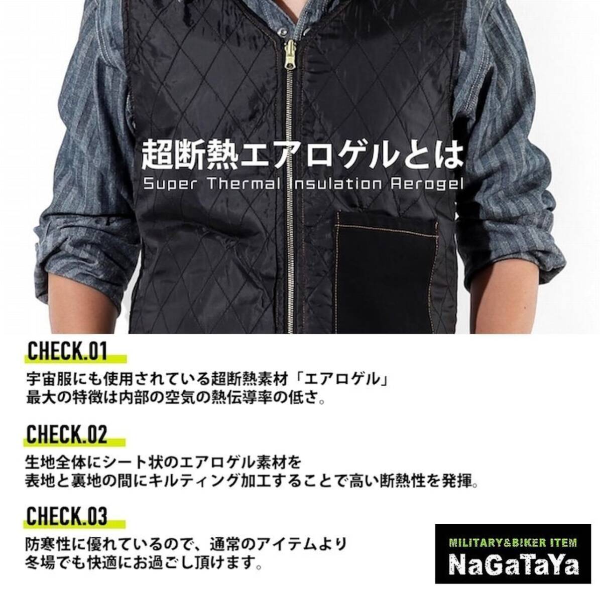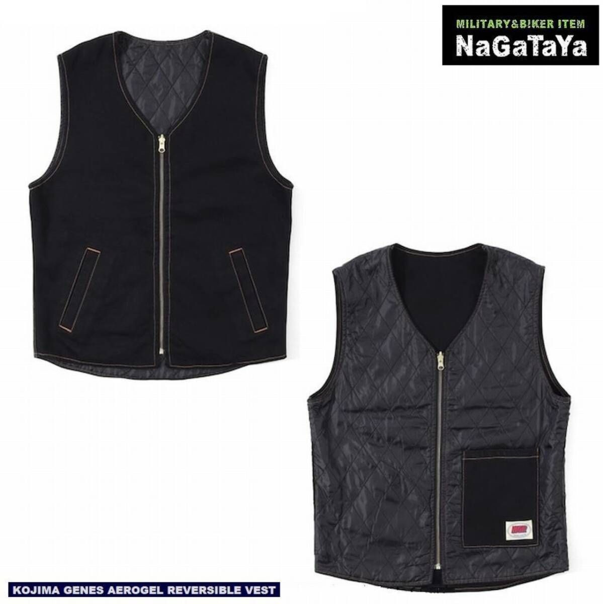 ■ 児島ジーンズ KOJIMA GENES 断熱素材 エアロゲル リバーシブル ベスト 2way仕様 KGR501 ブラック 黒 NASA ■