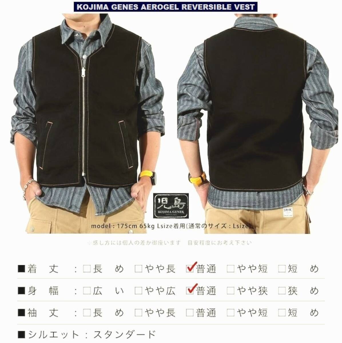 児島ジーンズ KOJIMA GENES 断熱素材 エアロゲル リバーシブル ベスト 2way仕様 Lサイズ KGR501 ブラック 黒 NASA MADE IN KOJIMA