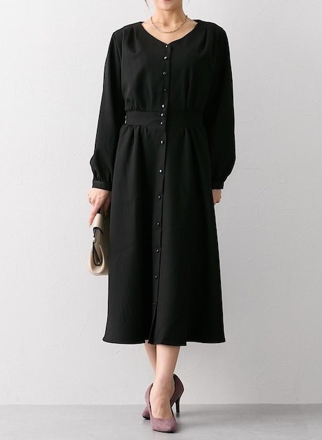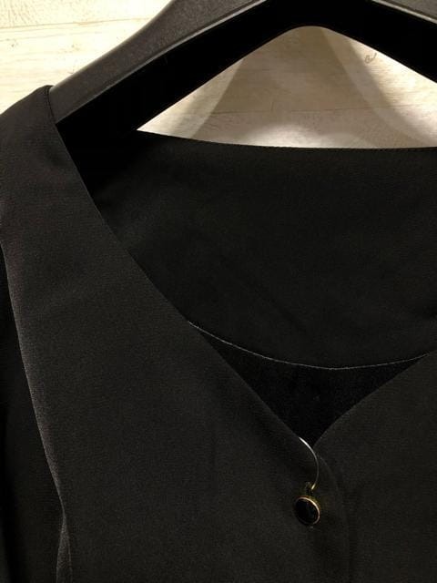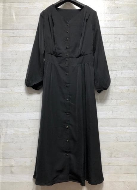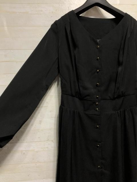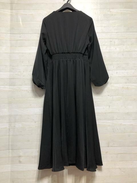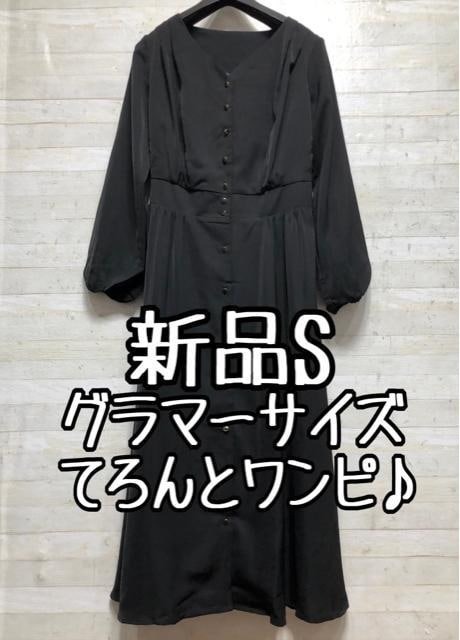 新品☆Sグラマーサイズ黒系Vネックきれいめワンピース〇B690