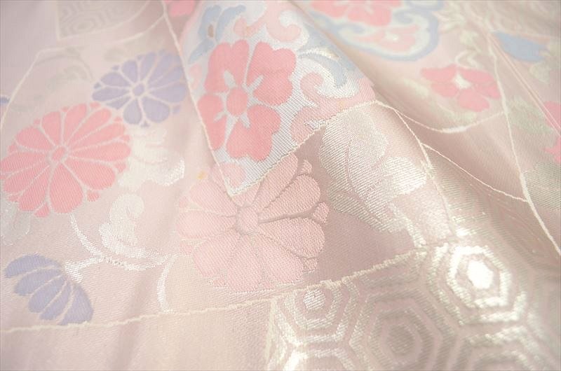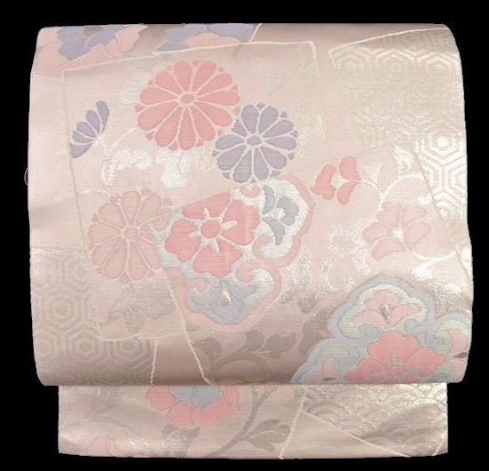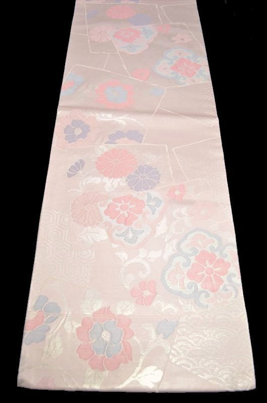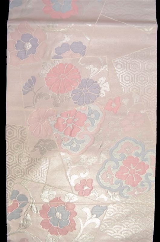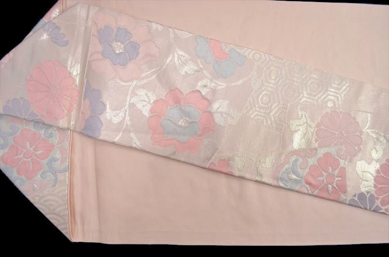 縁起良い青海波や亀甲に小花模様の九寸名古屋帯です。