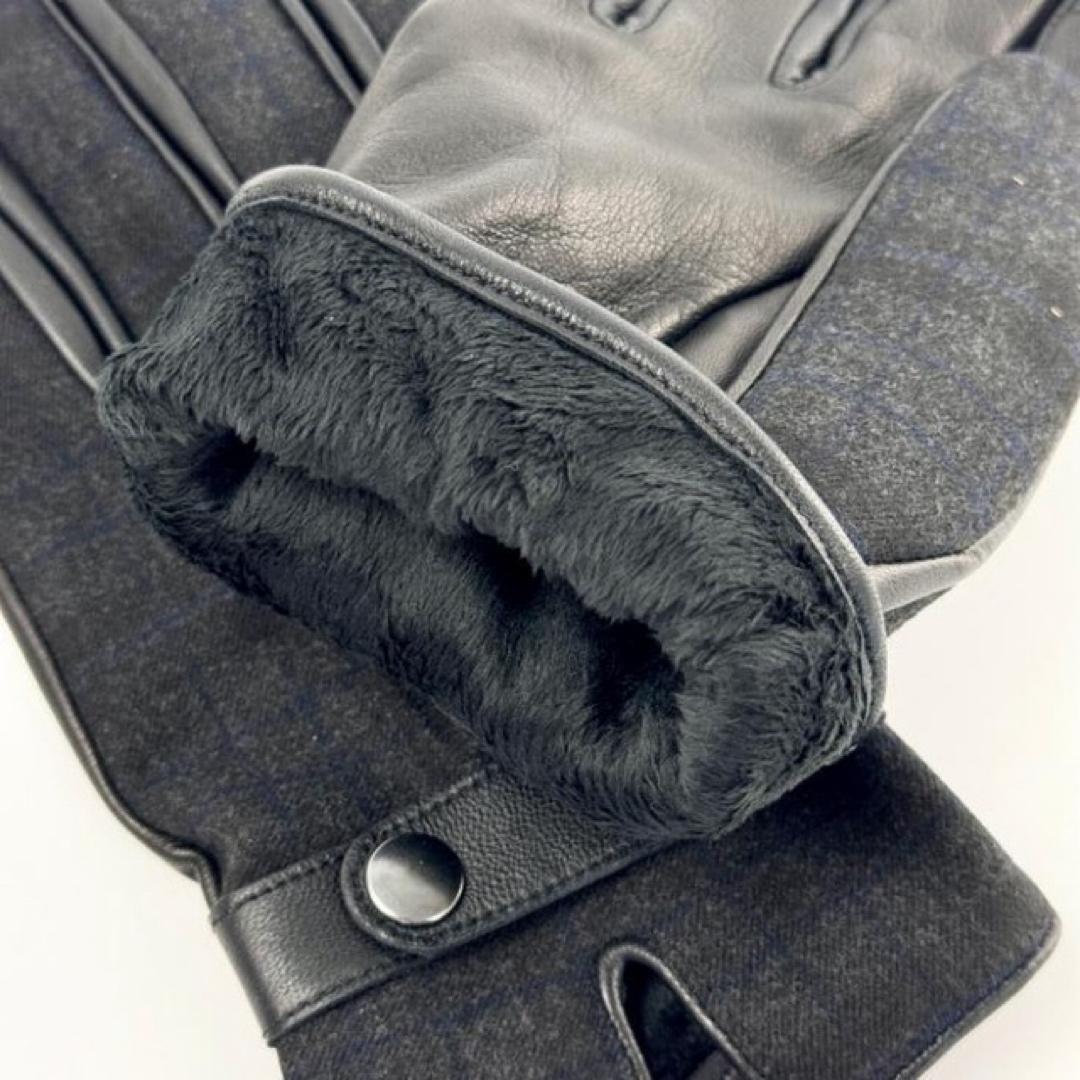 派手すぎない暗色のチェック柄が目立ちすぎなお洒落なメンズの手袋です♪