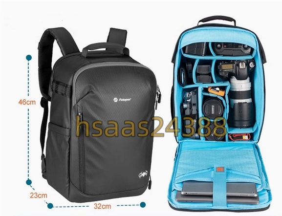 FOTOPRO FB-4PRO カメラバッグ バックパック 防水軽量 パソコン&タブレット収納可能 キャリーケース取り付け可能 容量約22L+3L 一個の出品 | |||