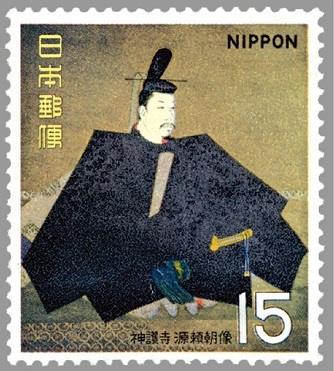 1968年(昭和43年)発行の、「第1次国宝シリーズ切手 神護寺 源頼朝像 15円」です。