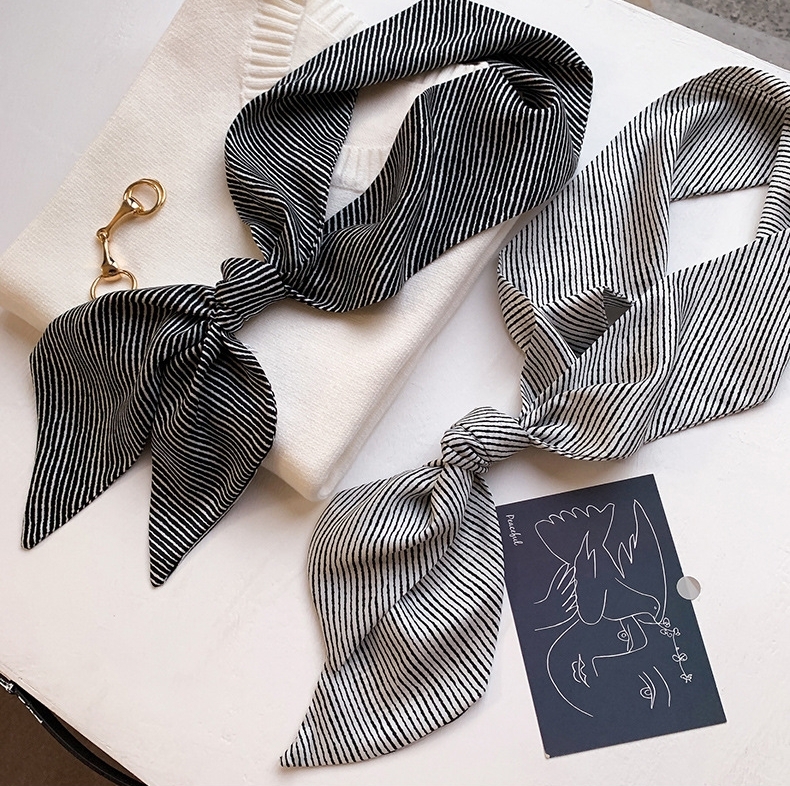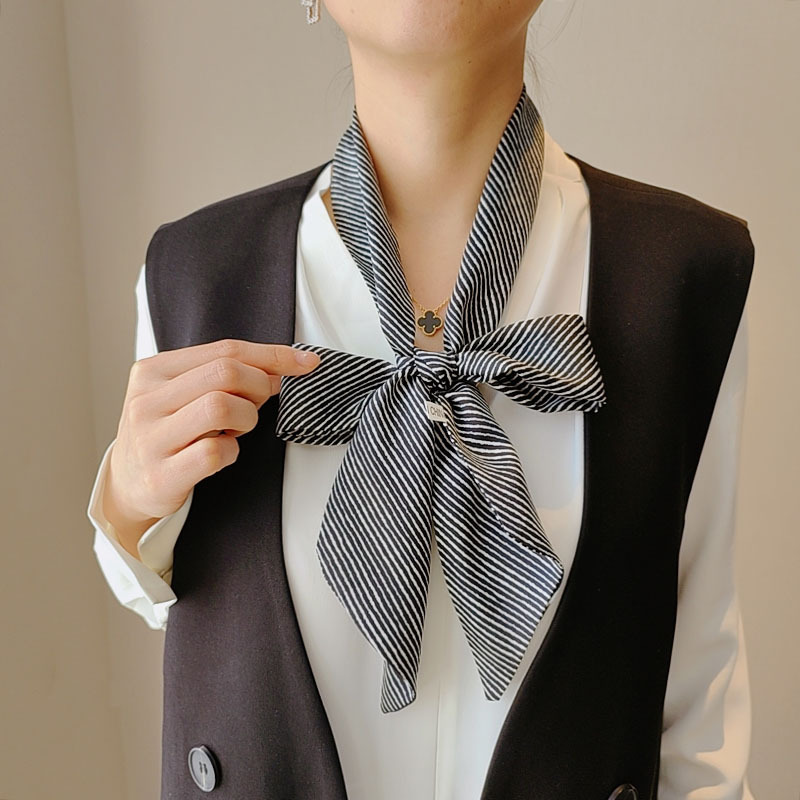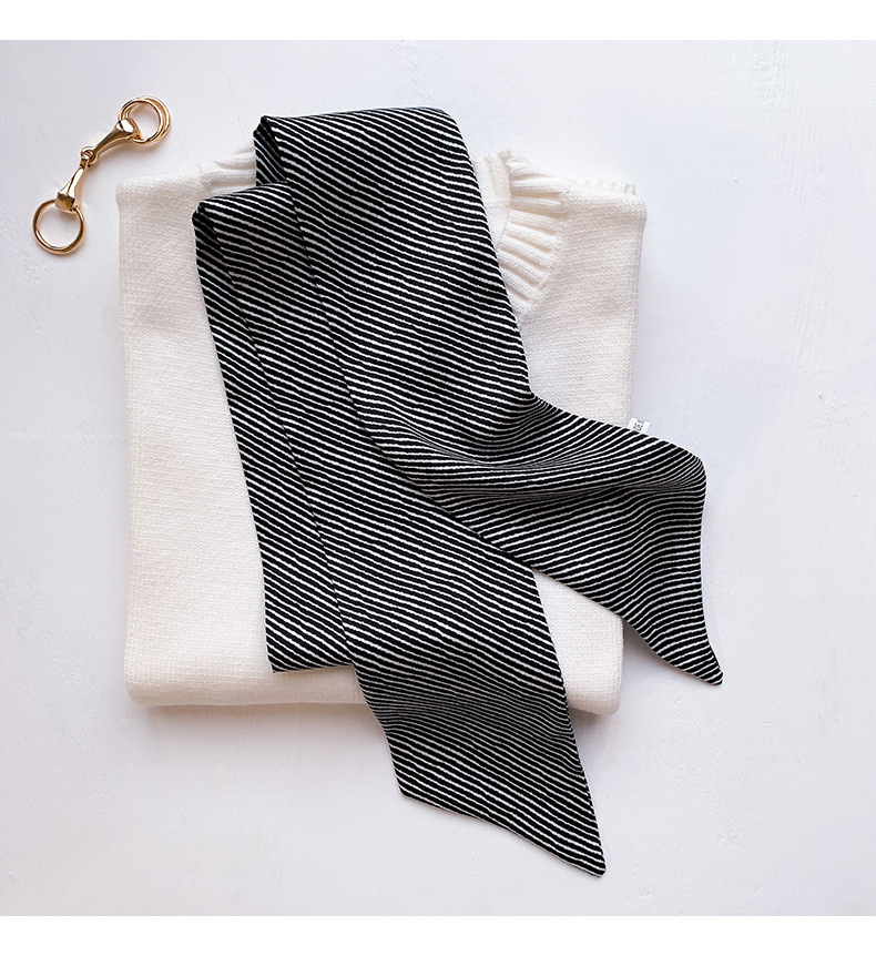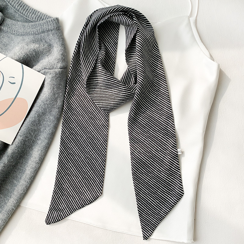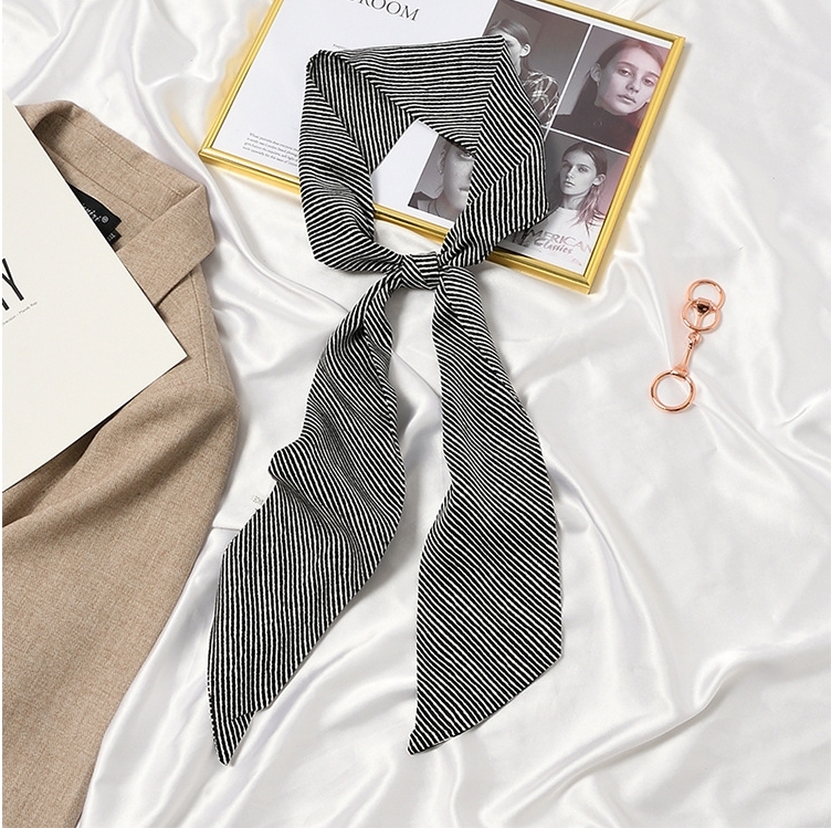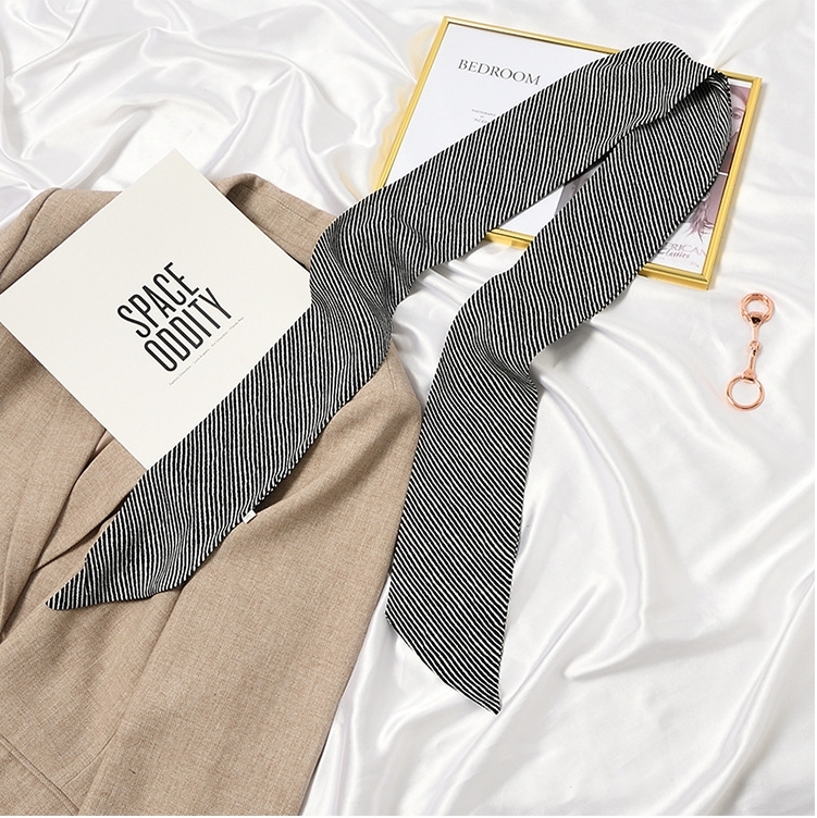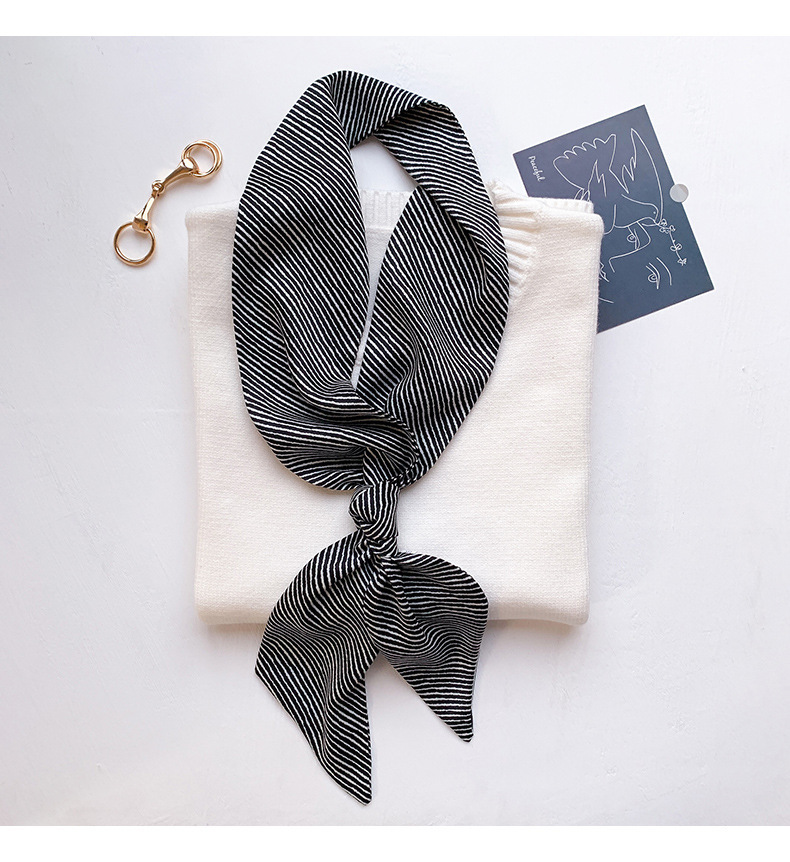 【JS-46】新品レディース スカーフ ストール巻き方 首元 おしゃれ 飾り 鋭角 多機能ネッカチーフボーダー柄 ブラック