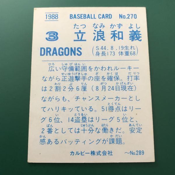 1988年 カルビー プロ野球カード 88年 270番 中日 立浪  【管理NO:3-53】