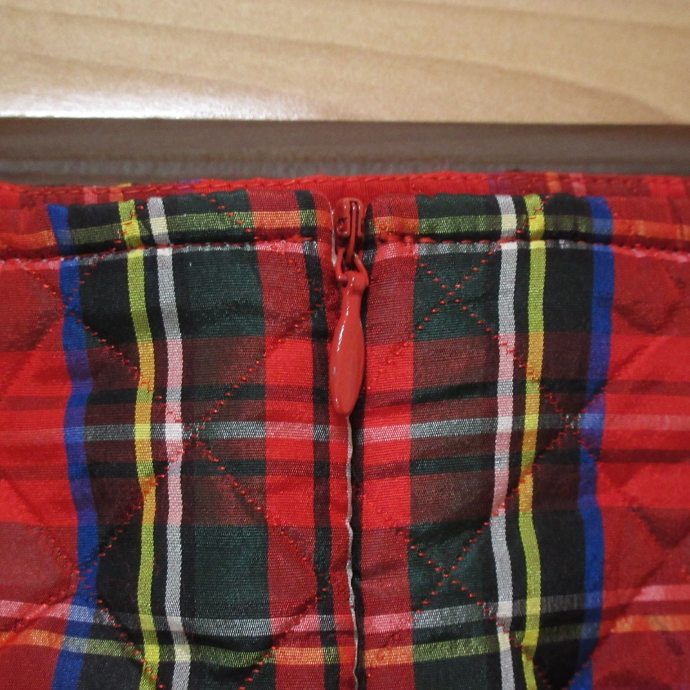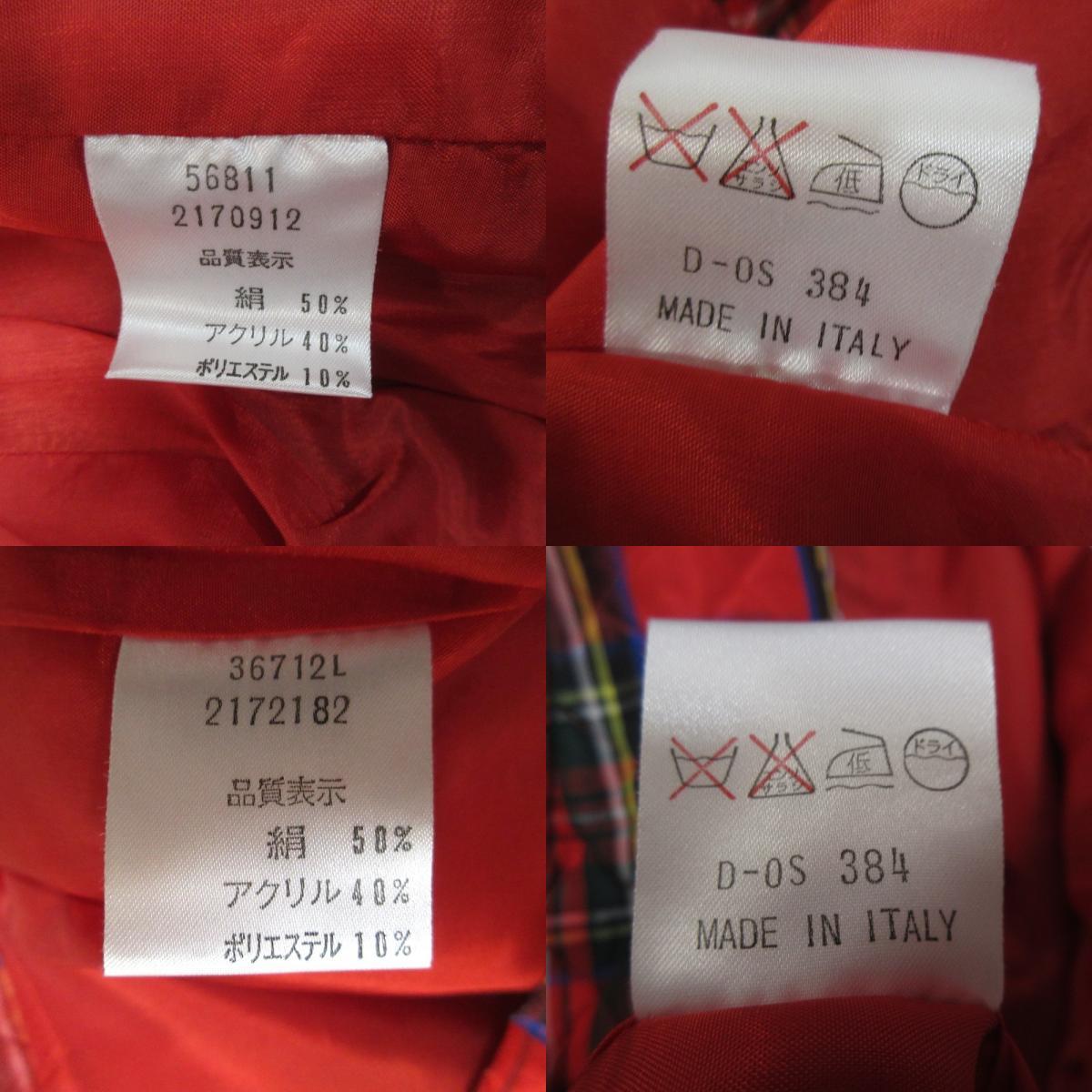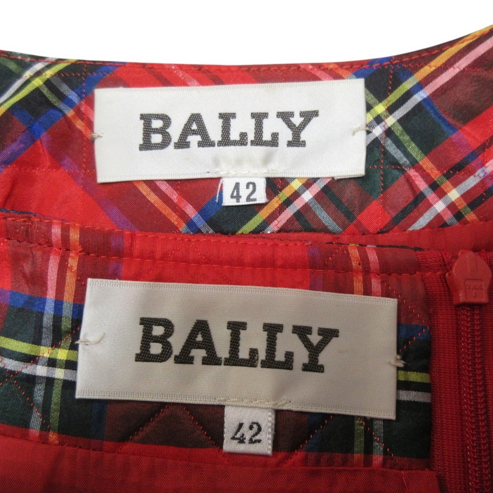 商品名:美品 BALLY バリー ヴィンテージ シルクブレンド チェック柄 キルティング ノーカラージャケット+ひざ丈スカート セットアップ 42 レッド