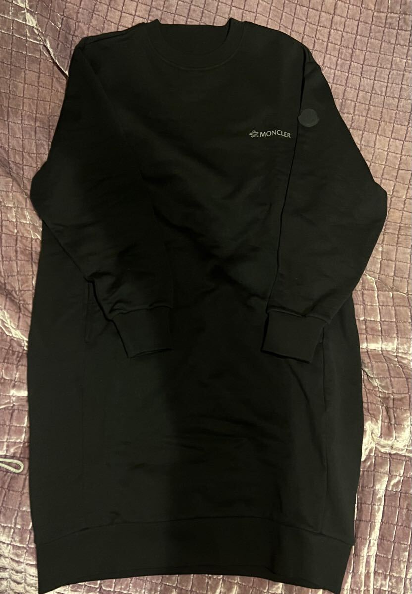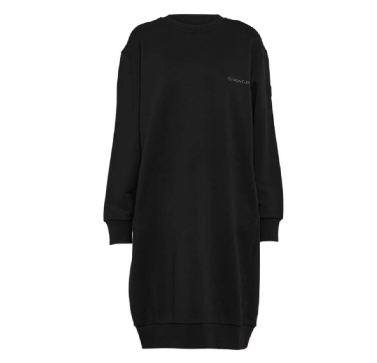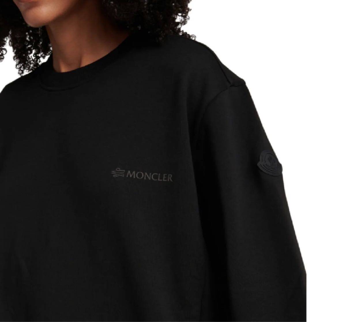 モンクレールより、Round neck dress kangaroo pocket black cotton sweatshirt logo chest shoulder のご紹介です。