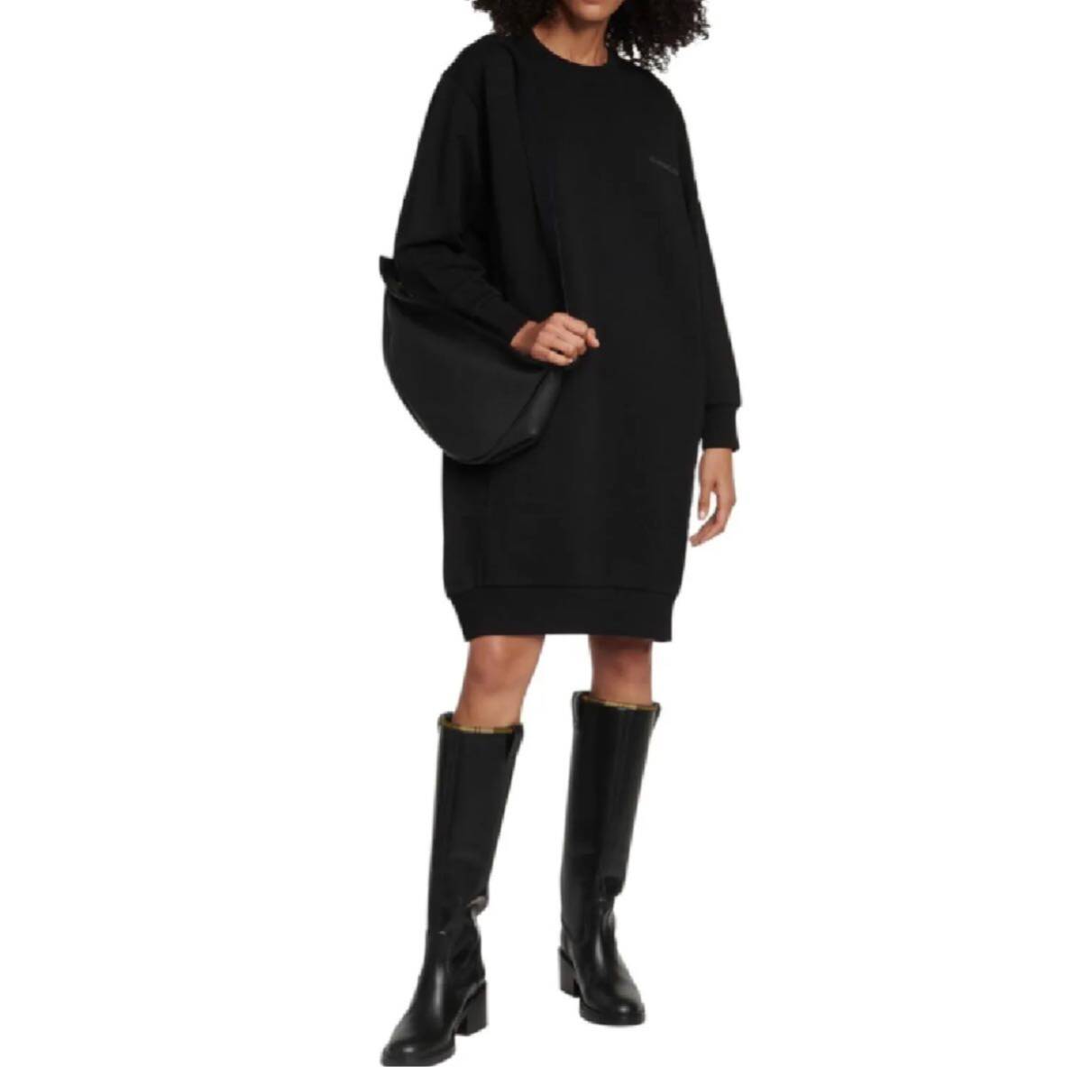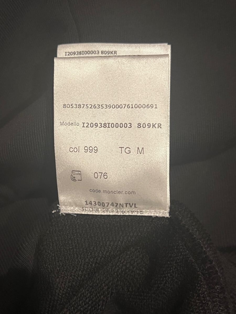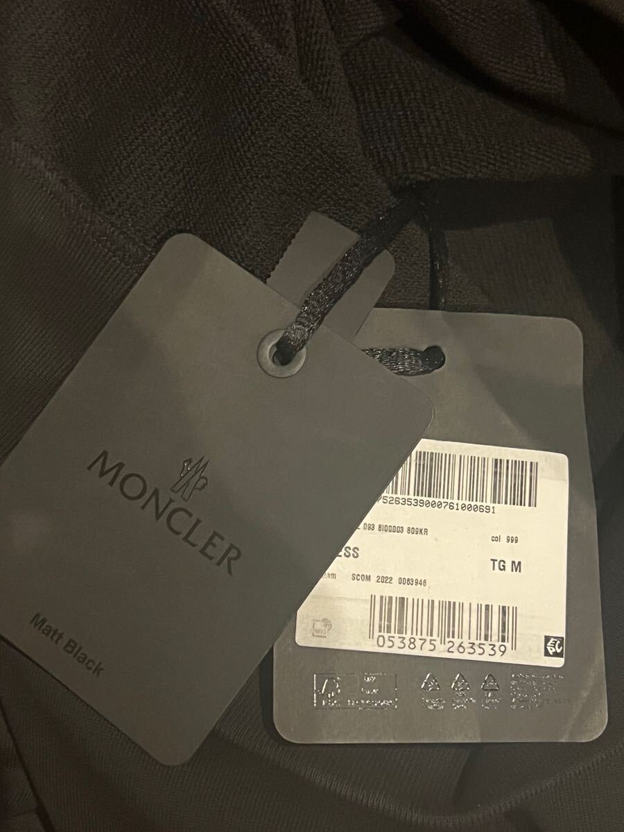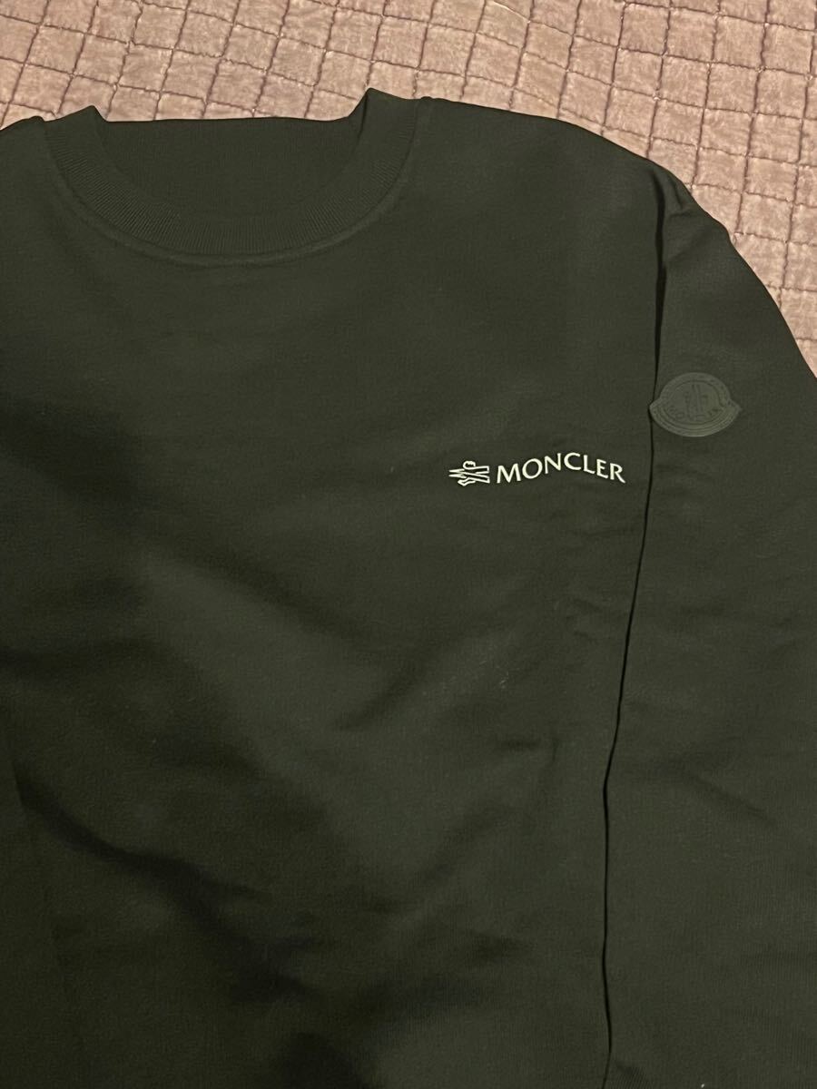モンクレールより、Round neck dress kangaroo pocket black cotton sweatshirt logo chest shoulder のご紹介です。