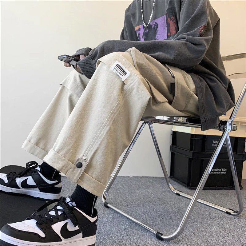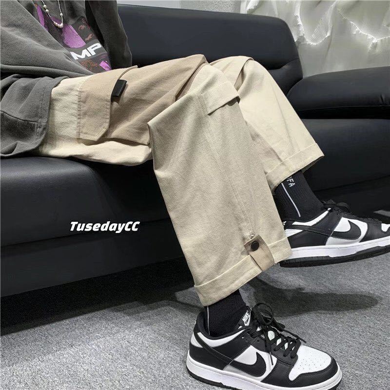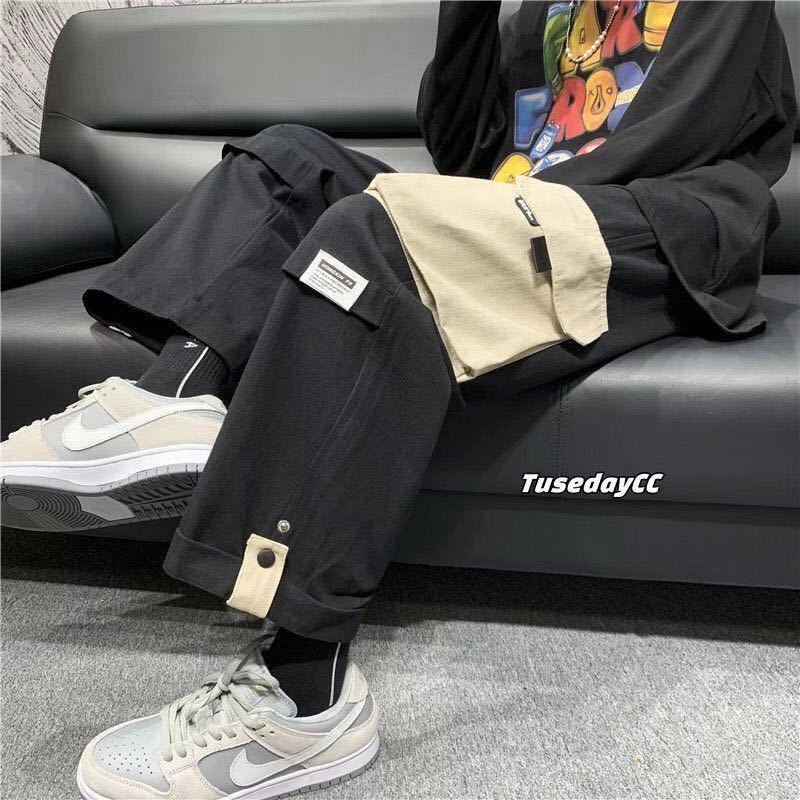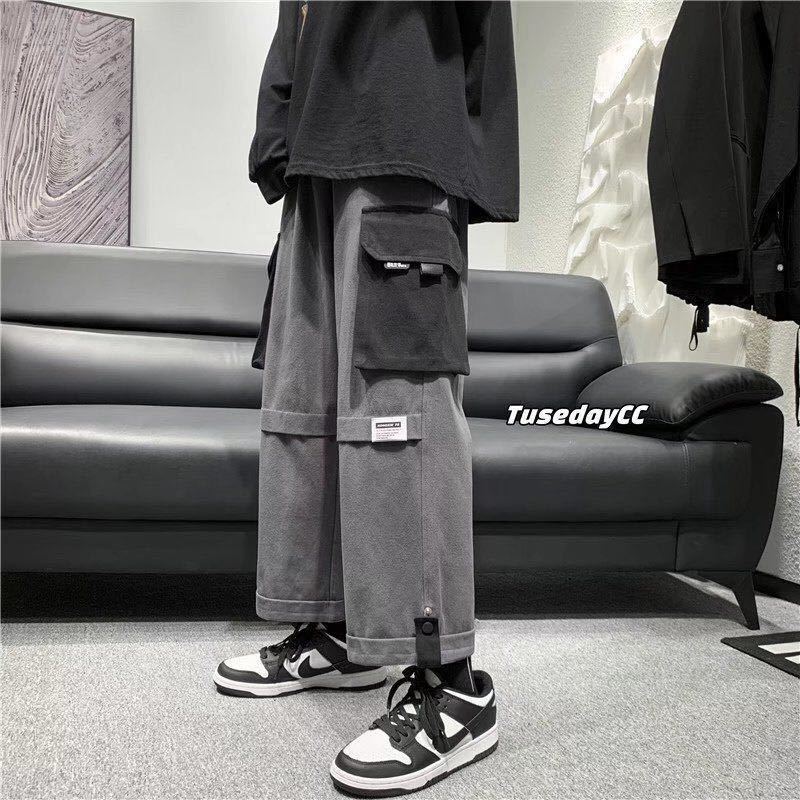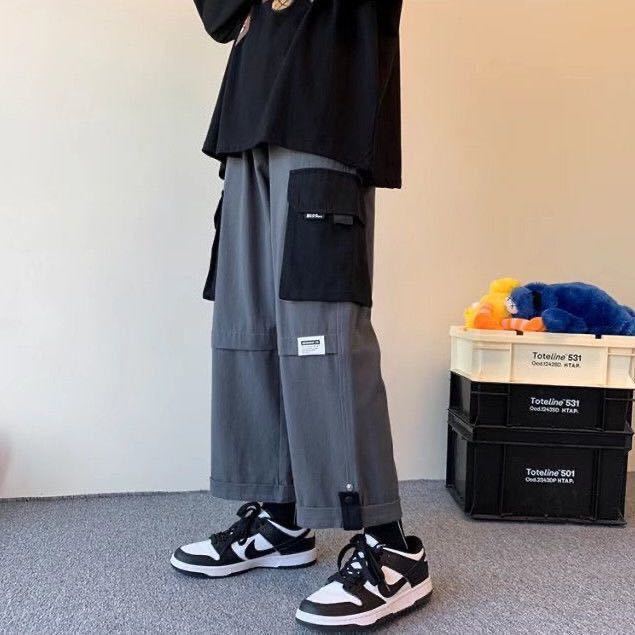 メンズ ワイドパンツ ワークパンツ バギーパンツ ズボン ウエストゴム 九分丈 春夏 ゆったり 大きいポケット カジュアル JPAS011(3色M-3XL)