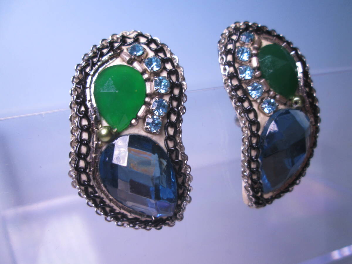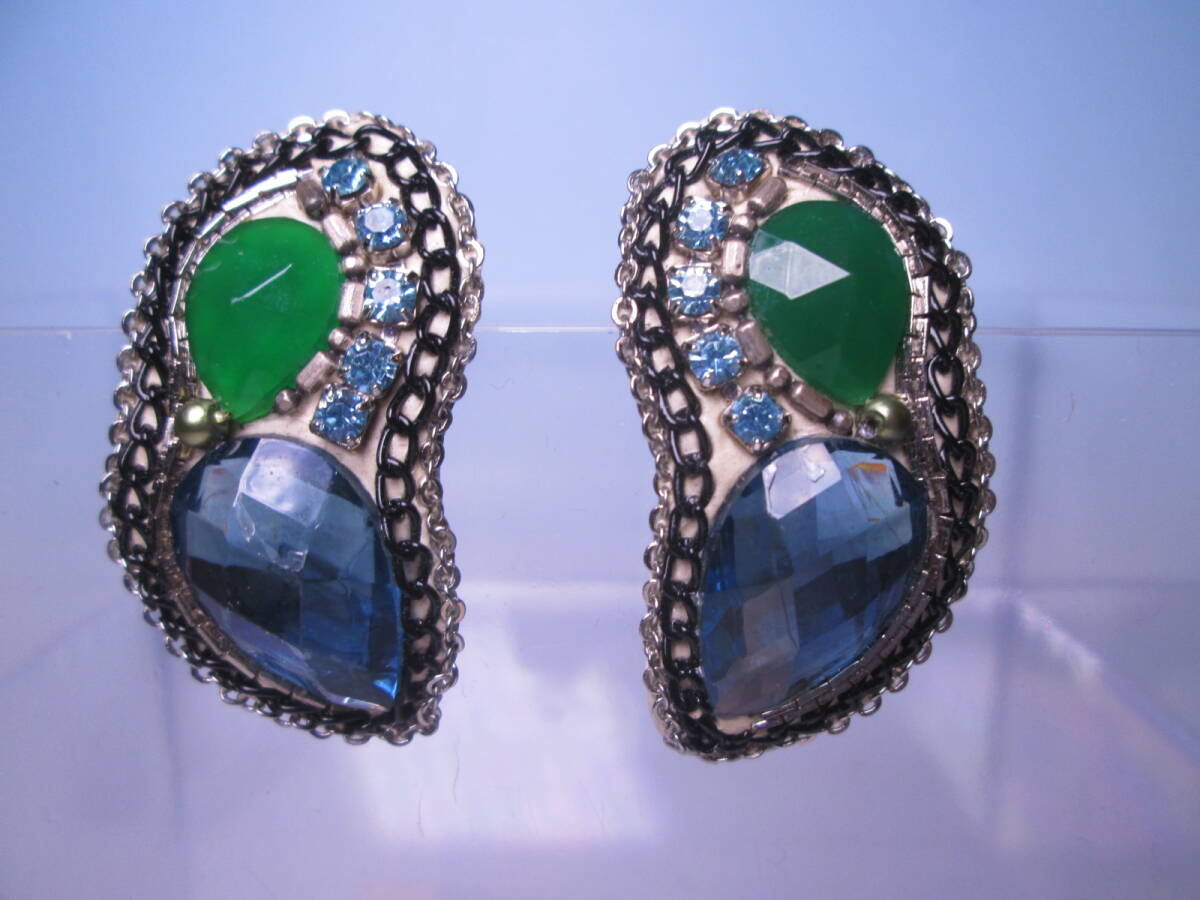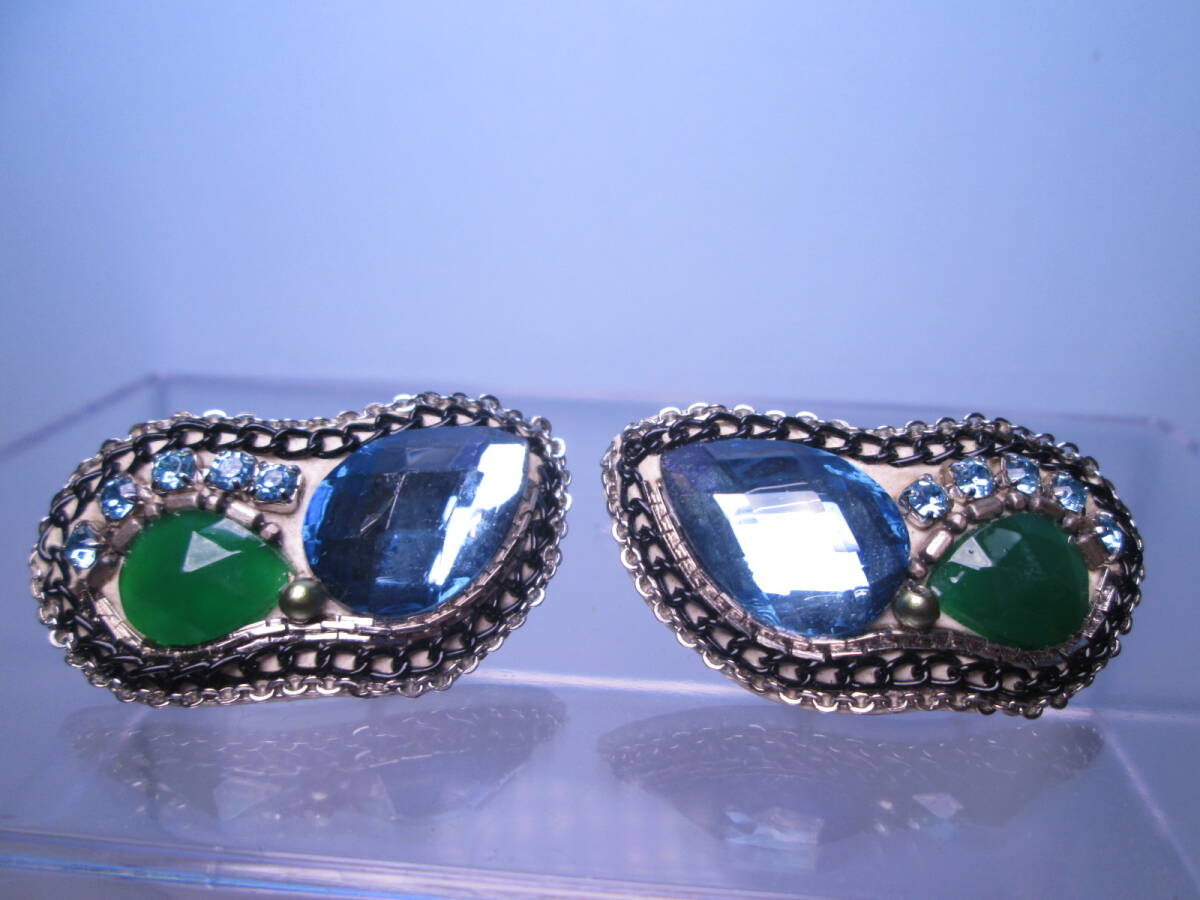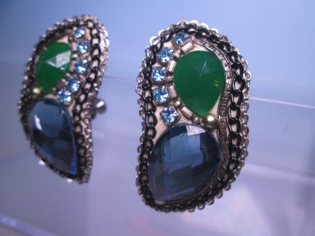 ☆デザイナーズジュエリー 工房 和 筒井和子作 ブルー/グリーンのイヤリング クラッシックジュエリー