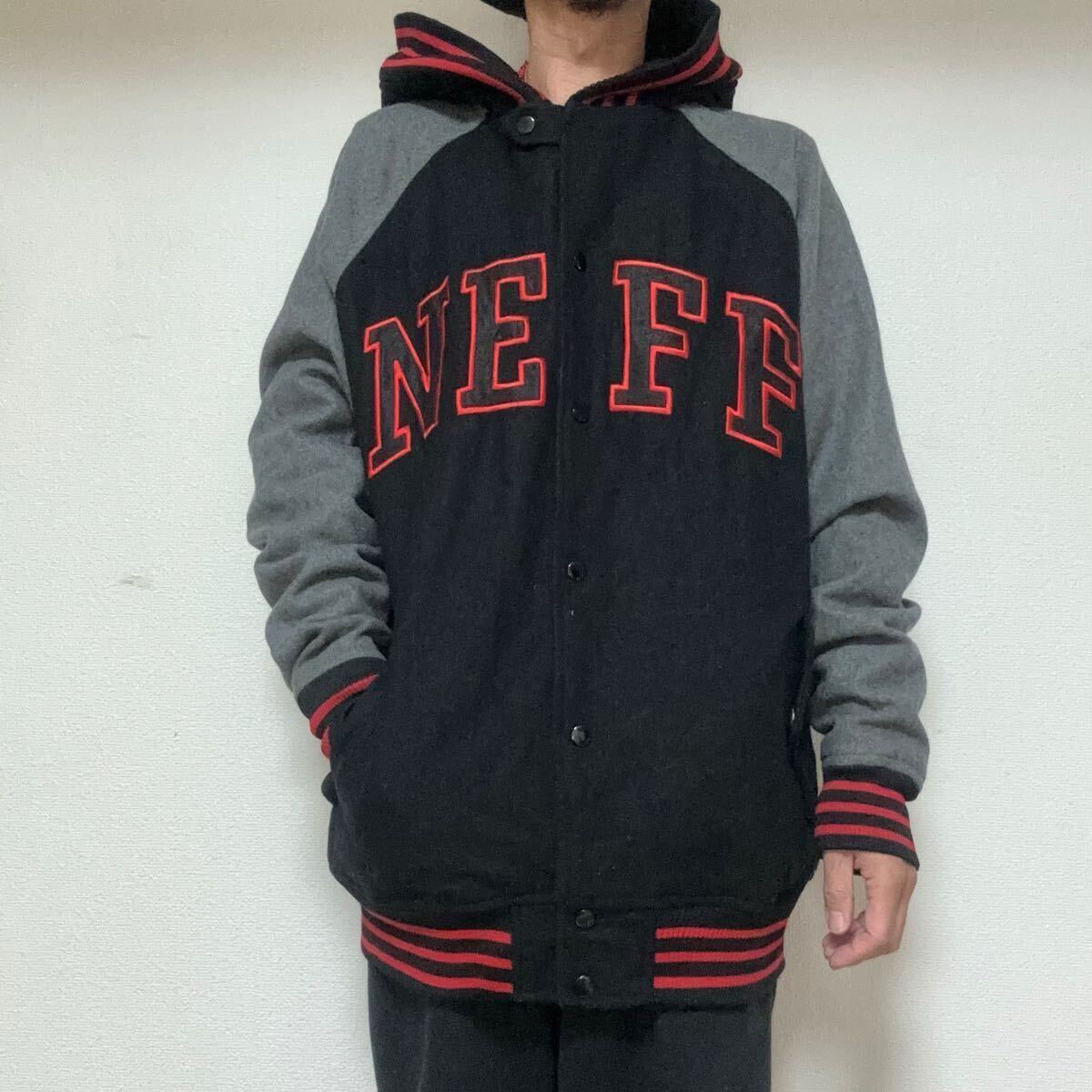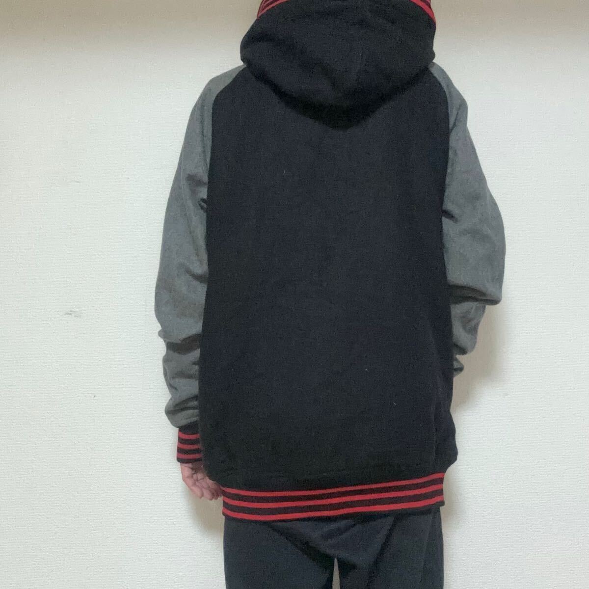 スタジャンとパーカーをミックスした様なデザインがストリートな雰囲気の一枚です。