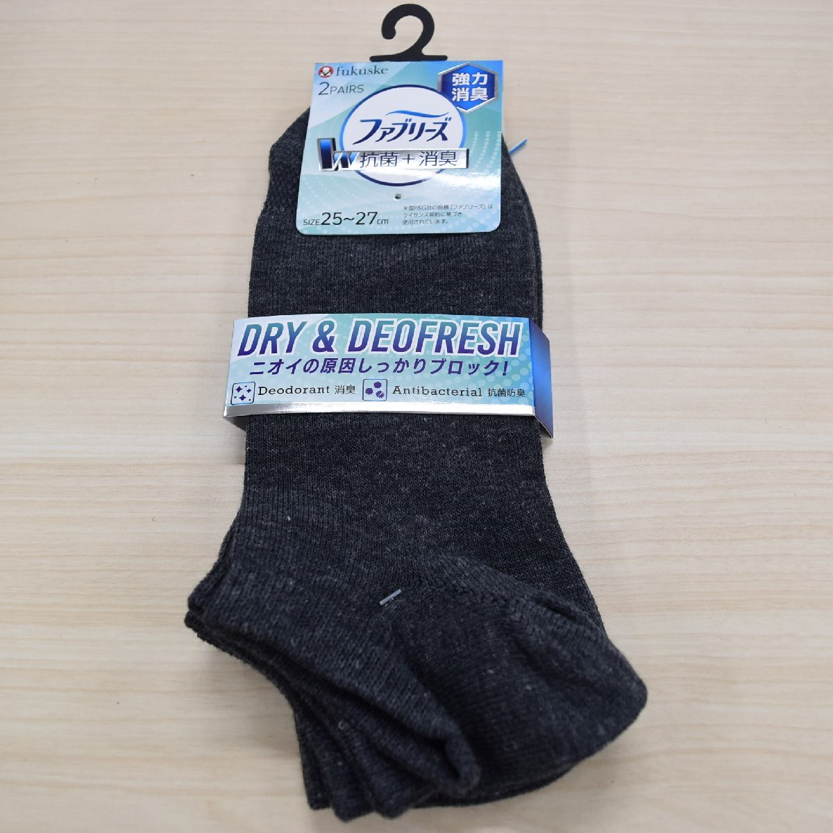 <新品> FUKUSUKE 靴下 2足組 ファブリーズ くるぶし丈 25~27cm グレー 27226W 革靴 強力消臭 ドライ 仕事 32