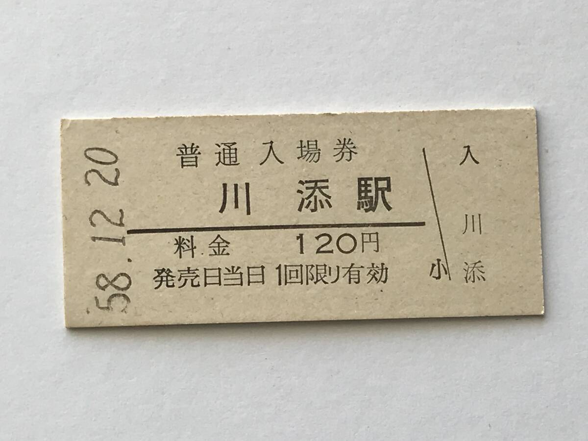 昔の切符 きっぷ 硬券 川添駅 普通入場券 料金120円 サイズ:約2.5×約5.8㎝ S58  HF5252   くるり 岸田繁